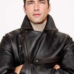 A timeless take on the iconic moto jacket, we kept all the details of the classic—an off-set zip closure, grommets under the arms, zippered cuffs and pockets—adding a Western-style yoke and a ruched accent at the back waist for rugged flair. For a true-to-the-original finish, our designers selected a beautifully burnished leather and an oversized fit.
