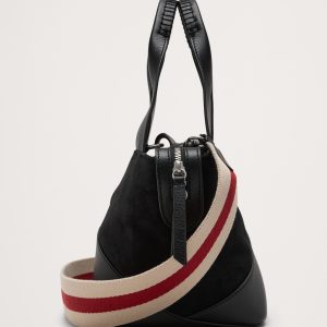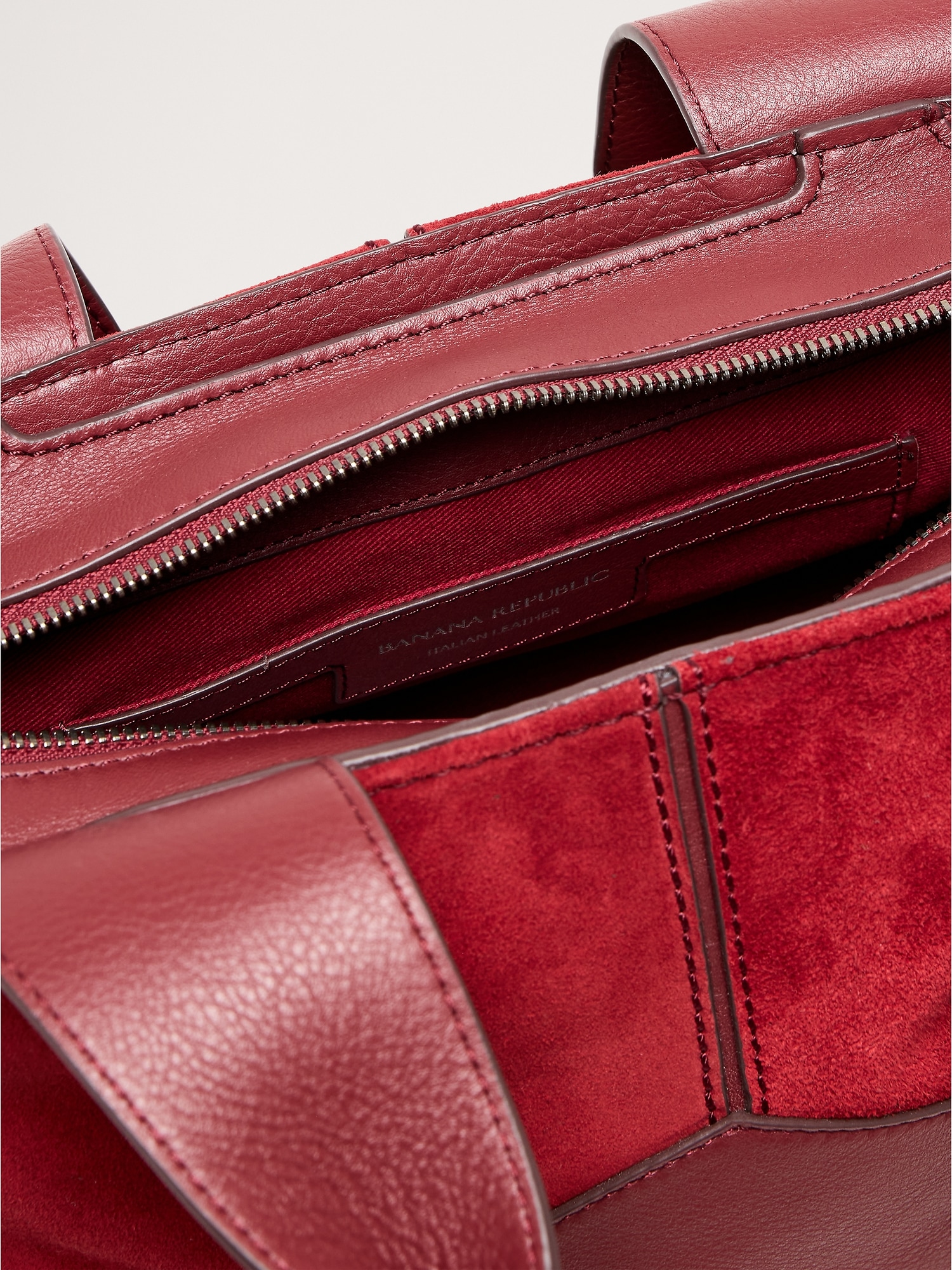 Beautiful materials need no ornamentation. Here, a patchwork tote in a smaller scale that shows off beautiful leathers and suedes from Italy.