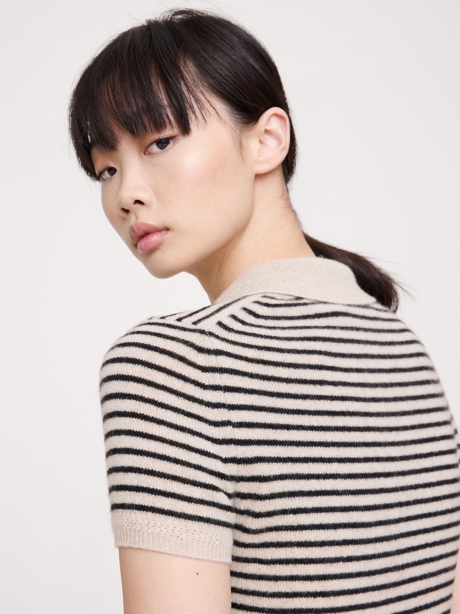 The vibe is lightweight luxury. This classic sweater polo has not-too-tight fit through the body, in our lightweight cashmere yarn.