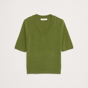 Lightweight Cashmere V-Neck Short-Sleeve Sweater