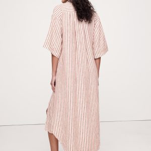 A best-selling style now in 100% certified-European linen, this dress features two sets of buttons: one to wear as an oversized button-front shirt dress and a second set to style as an asymmetrical wrap dress.