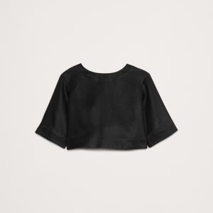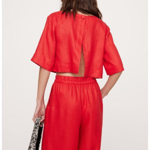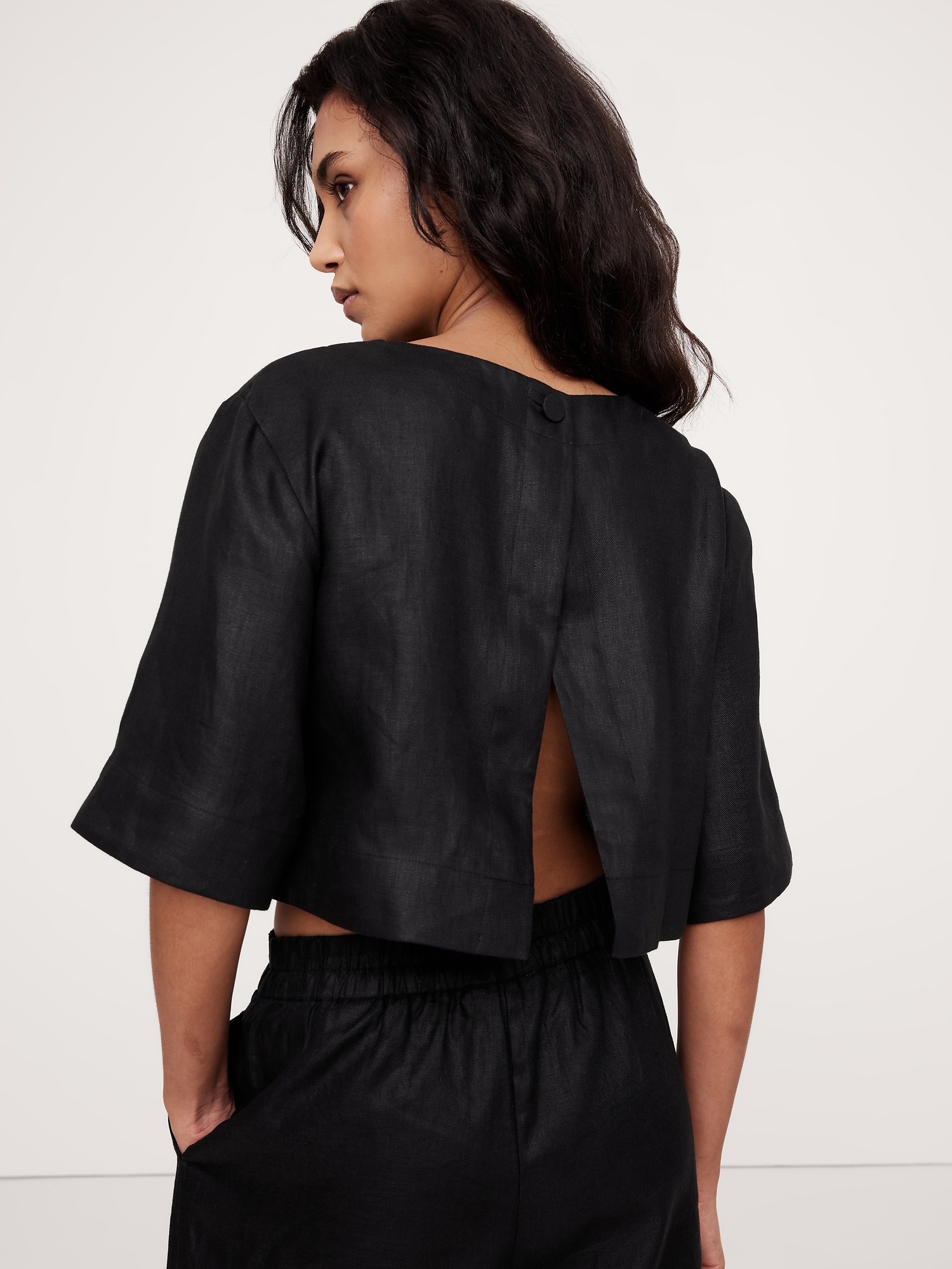 Linen Boat-Neck Cropped Top