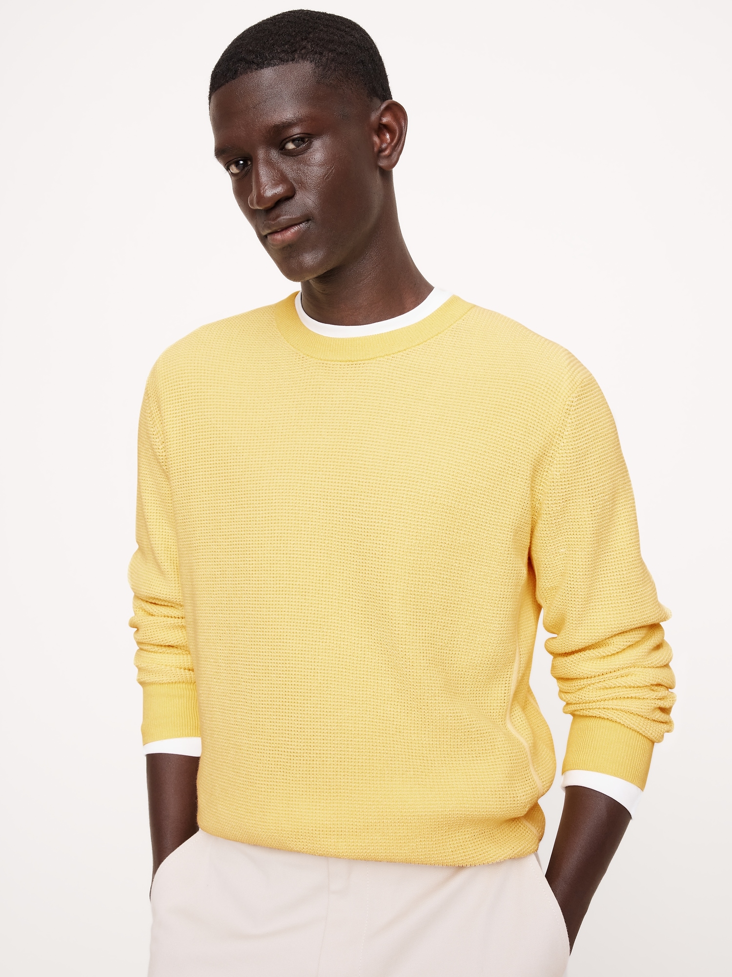 A great year-round sweater in a timeless waffle-knit texture, this crew-neck sweater is made from breathable linen and cotton.