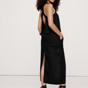 Relax, it’s linen. This midi skirt is cut with patch pockets and slits at front and back for an at-ease look.