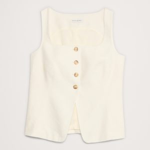 Linen Square-Neck Long Vest