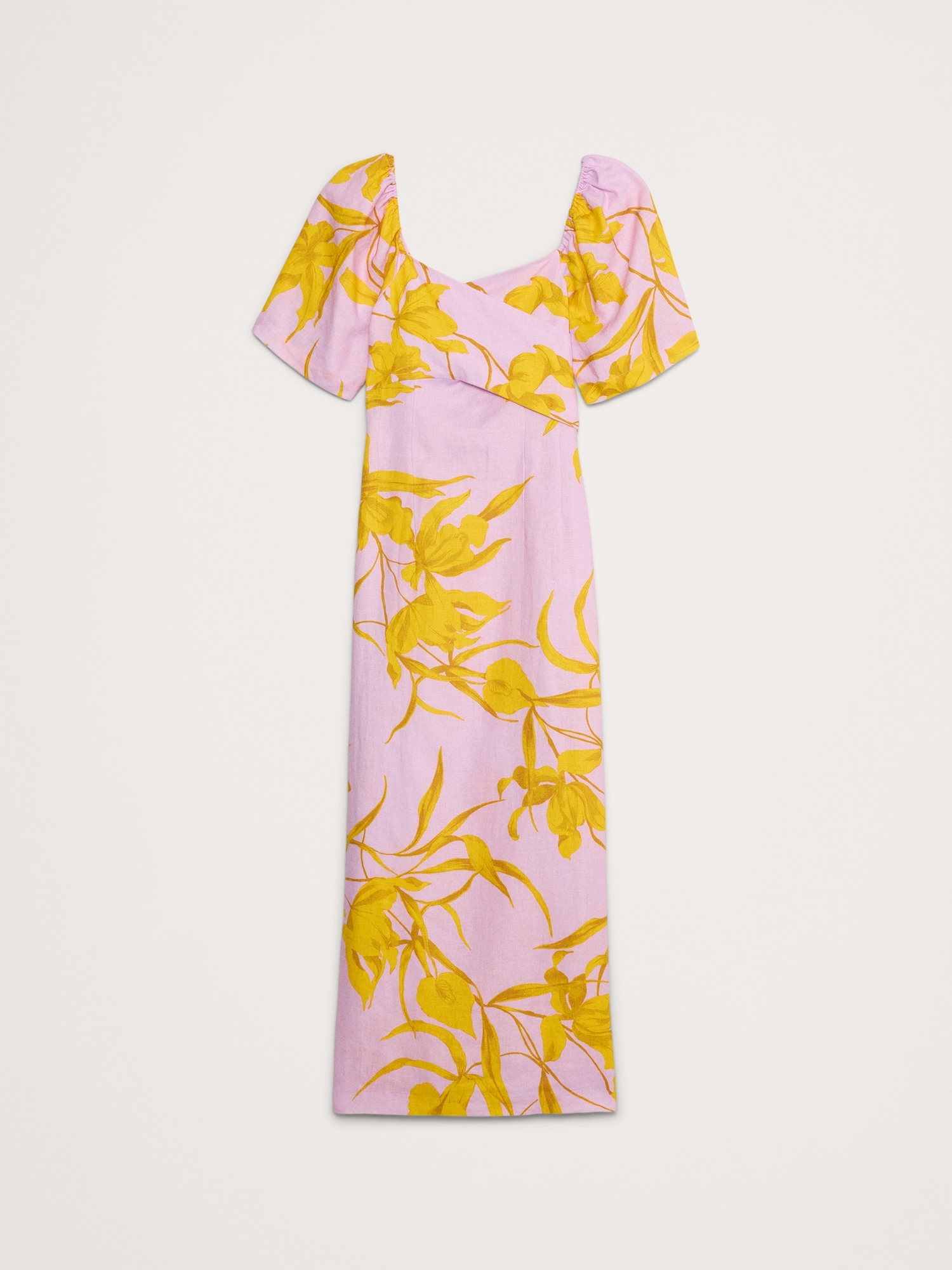 Honestly, one of our favorite linen dresses this season. We cut it with dressier occasions in mind, opting for a sweetheart neckline and almost-flutter sleeves, in 100% certified-European linen.
