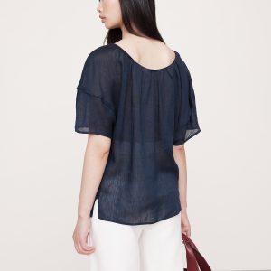 Linen-Viscose Puff-Sleeve Top
