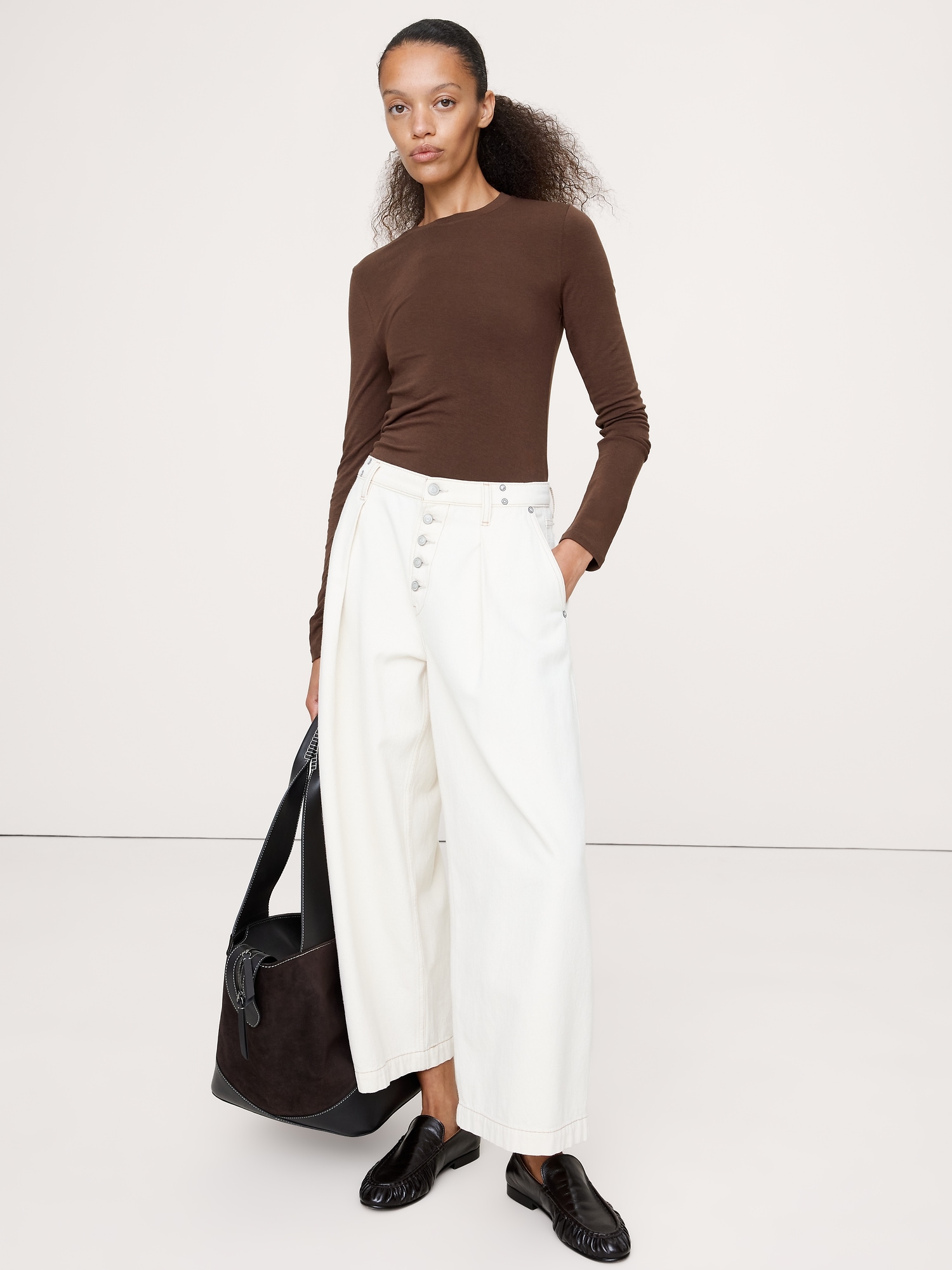 So good, we had to bring it back. This crew-neck top is made from a luxuriously soft wool-blend jersey, in a weight that’s suitable for layering through cooler weather.