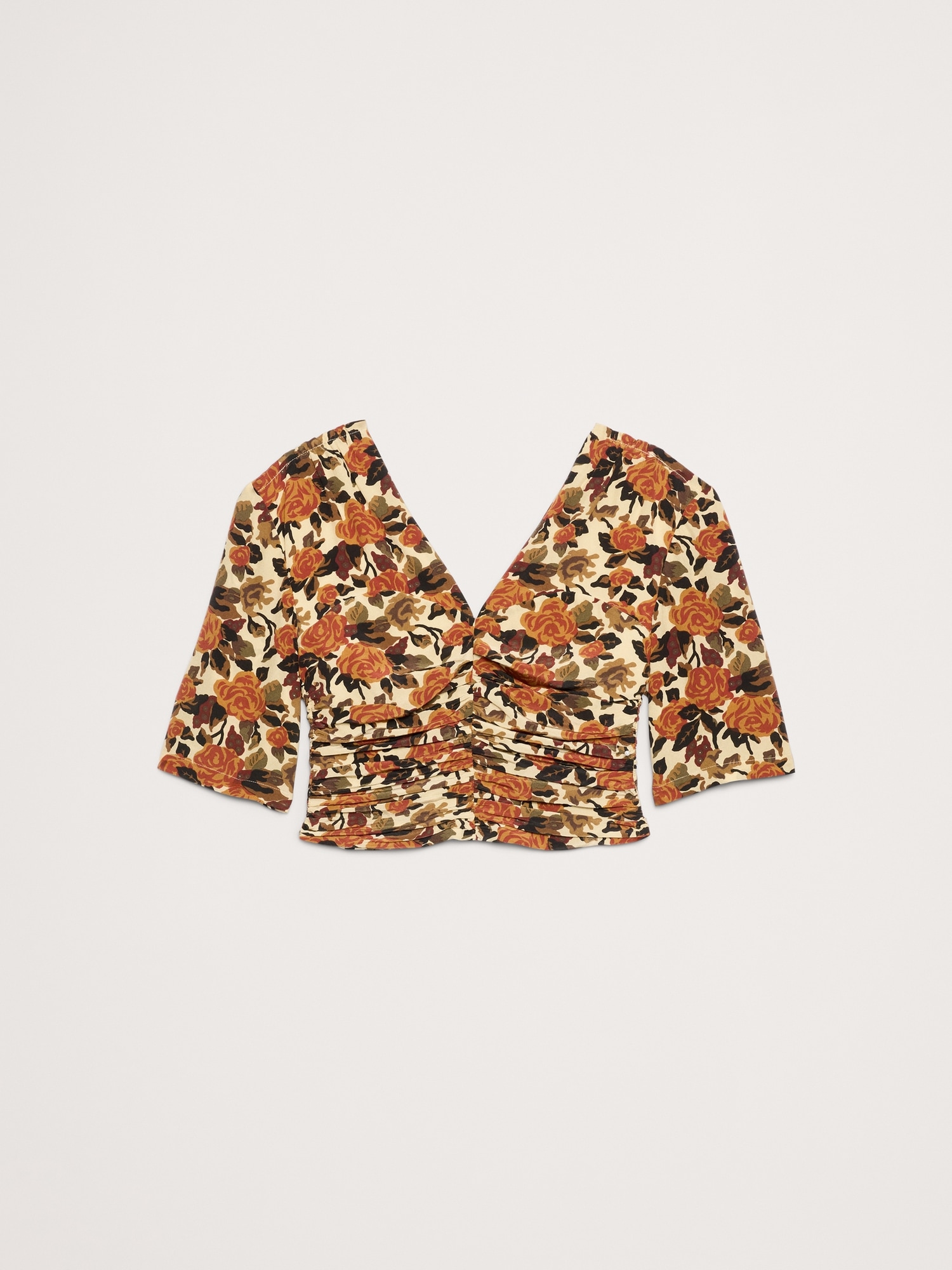 A cute cropped top with a ruched front, cut from our signature silk de chineDid we mention it’s machine washable?