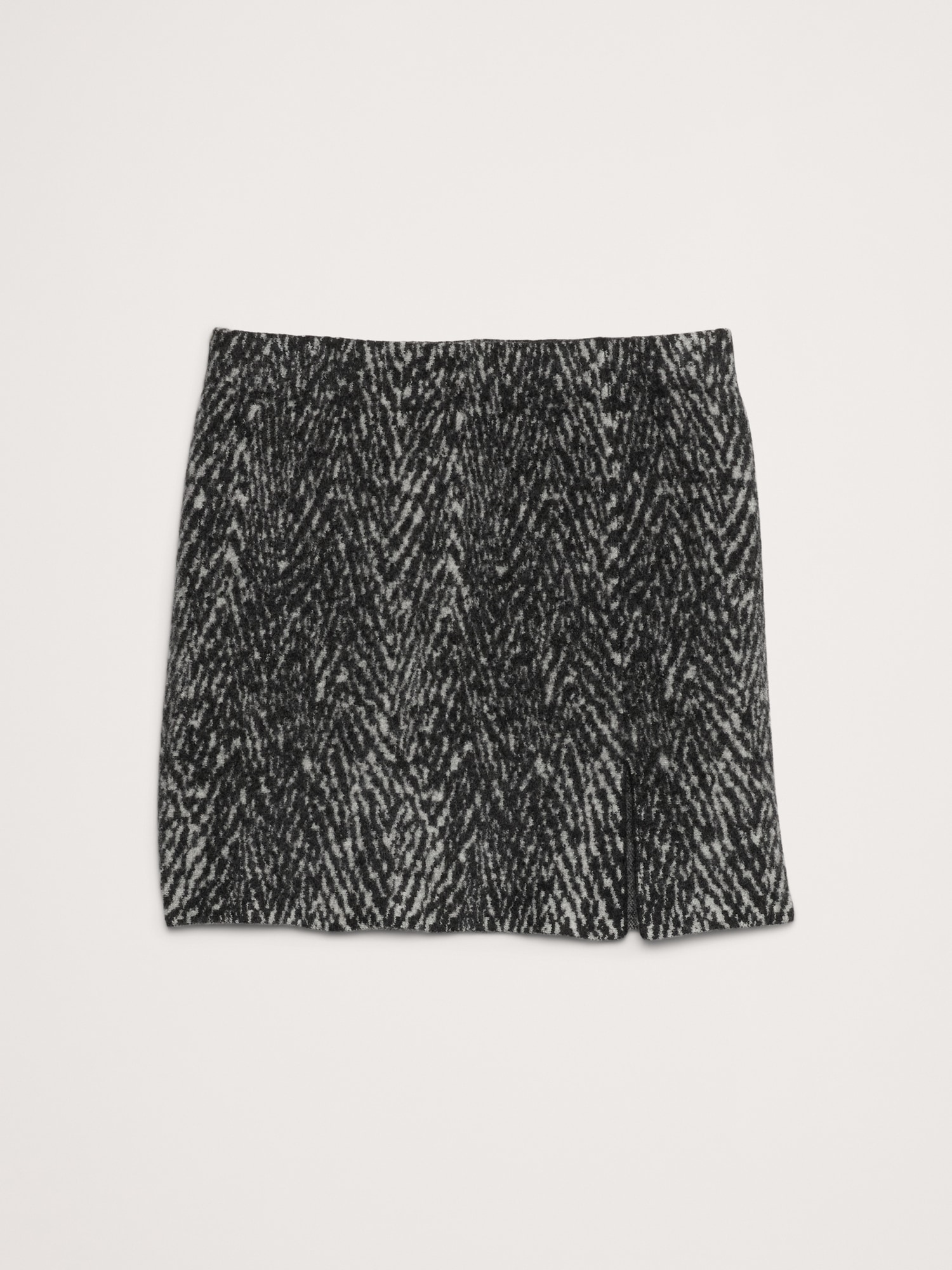 We cut this mini skirt with an angled, asymmetrical hem and a split-hem detail. For fabric, we reach for a special boiled Merino wool, a process that produces an incredibly soft handfeel and subtle, fluffy effect.