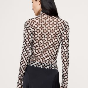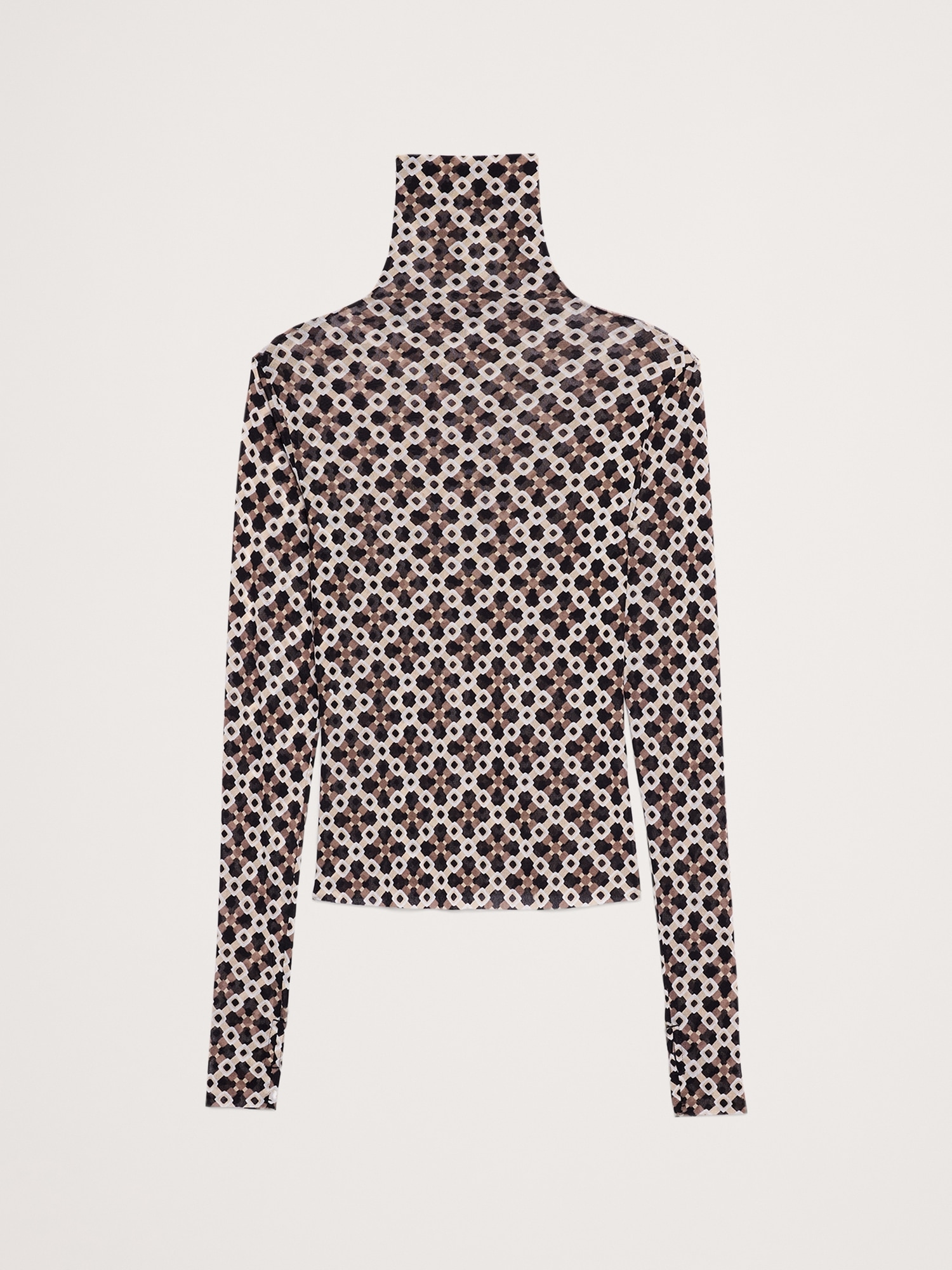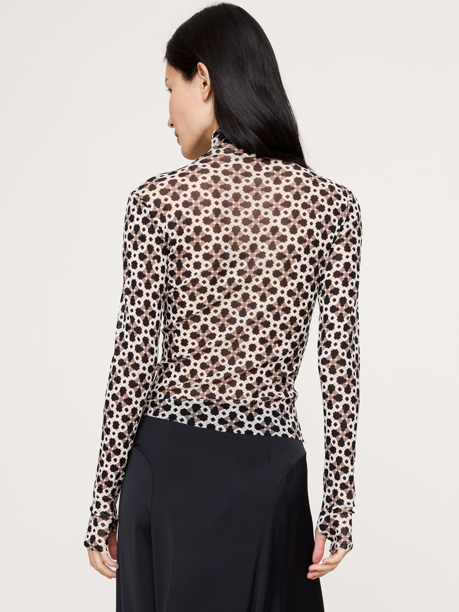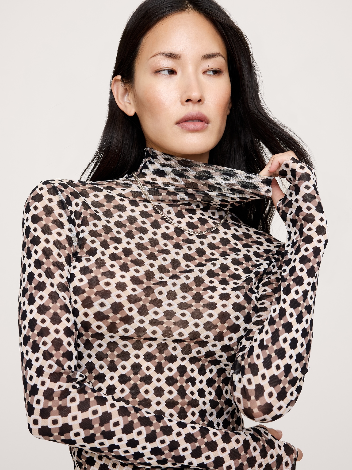 Things we love about this cute top: the semi-sheer mesh, the high neck, and the long sleeves with thumbholes. Plus, it’s super stretchy and t-shirt soft.