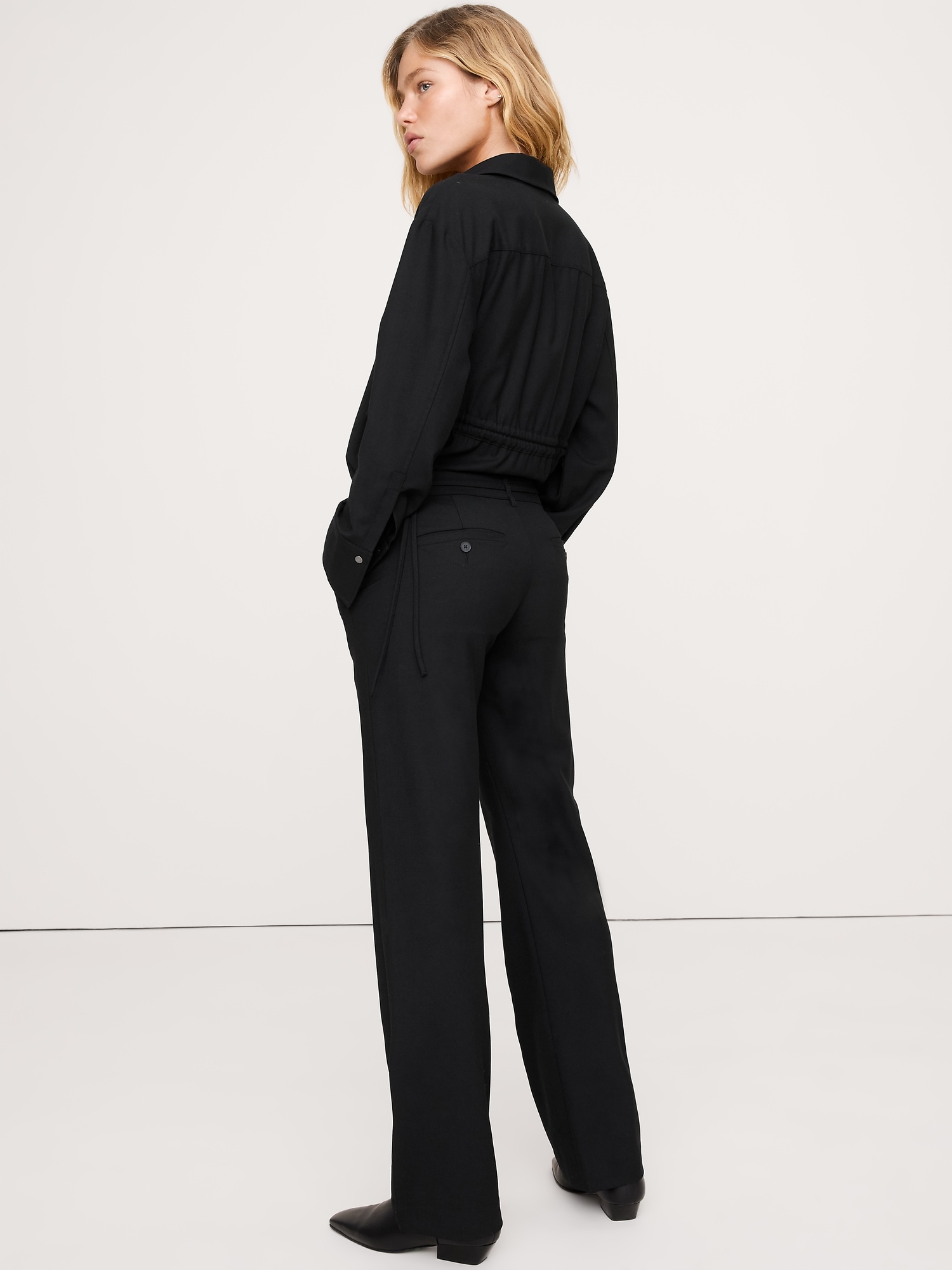 The pant we’ve been dreaming of. This one brings the 2000s vibes with a mid-rise bootcut silhouette and a belted waist. Cut in a wool-blend flannel fabric we love for its smooth look and comfort stretch. Bootcut Fit: Mid-rise. Slim through the hip and thigh with a bootcut leg. Full length. Zip fly with hook-and-bar closure. Belt loops and removable slider belt. Front and back pockets. Unlined. #826928