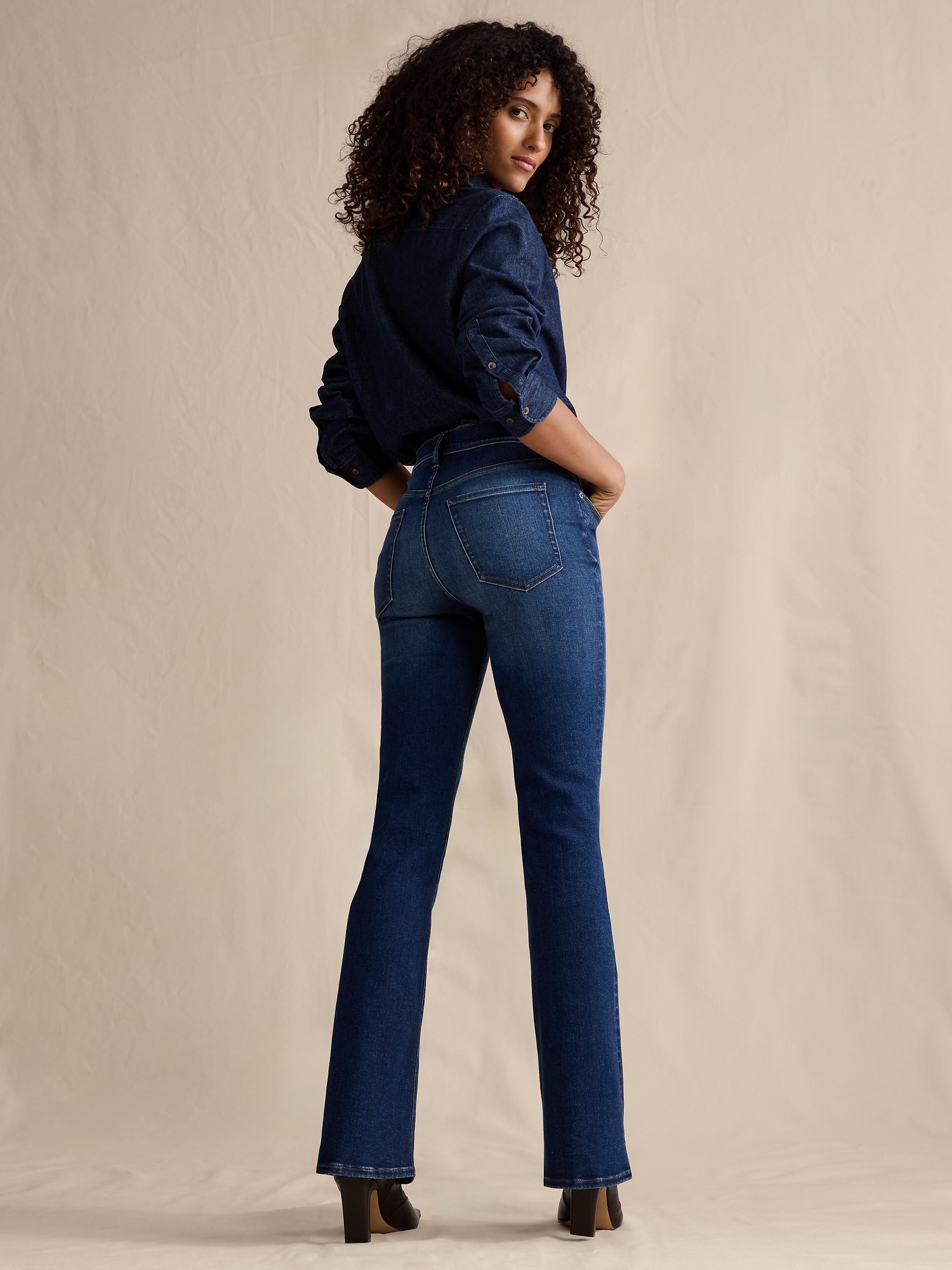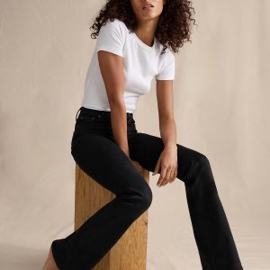 Did you get taller? Designed for a body-hugging fit, these mid-rise flare jeans are cut from a denim fabric we love for its superior stretch and soft feel against the skin.