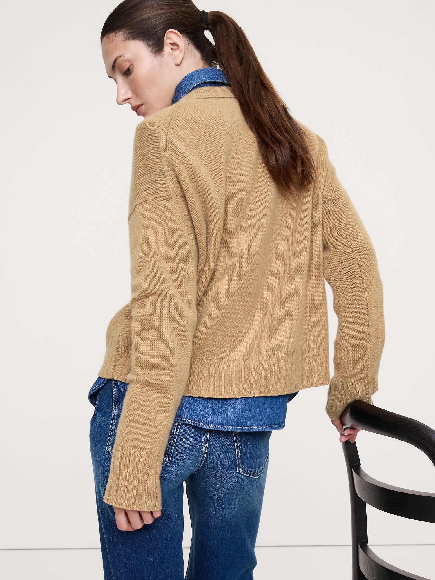 Supremely soft and warm, we chose our midweight cashmere yarn for this sweater so it will carry you through cooler months. Here, we opted for a longer length that hits just below the hips.