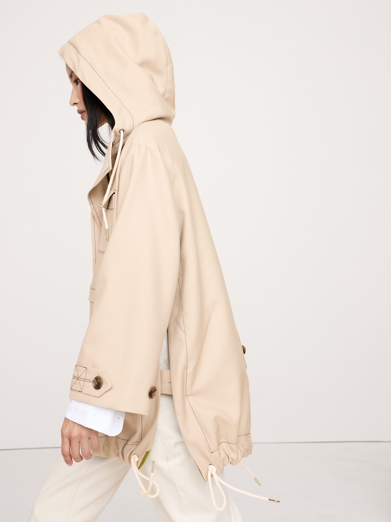 Drawstring hem.
