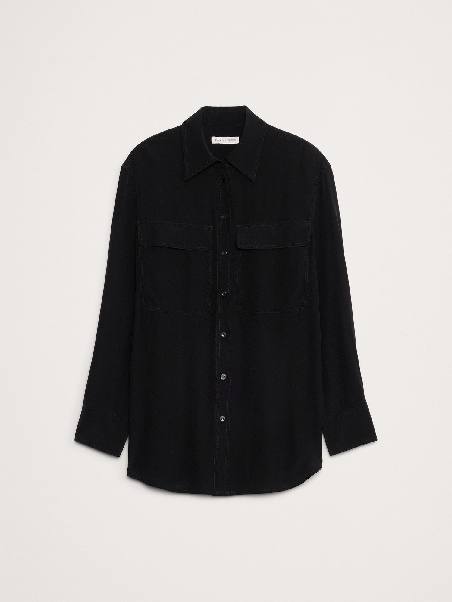 Cut from our signature silk de chinethis oversized shirt has chest pockets for a utility twist on the classic button-down shirt. Did we mention it’s also machine-washable? Oversized fit: Extra room through chest, shoulders, and waist. Dropped shoulder seams. Point collar with button front. Chest pockets. Shirttail hem. #826045