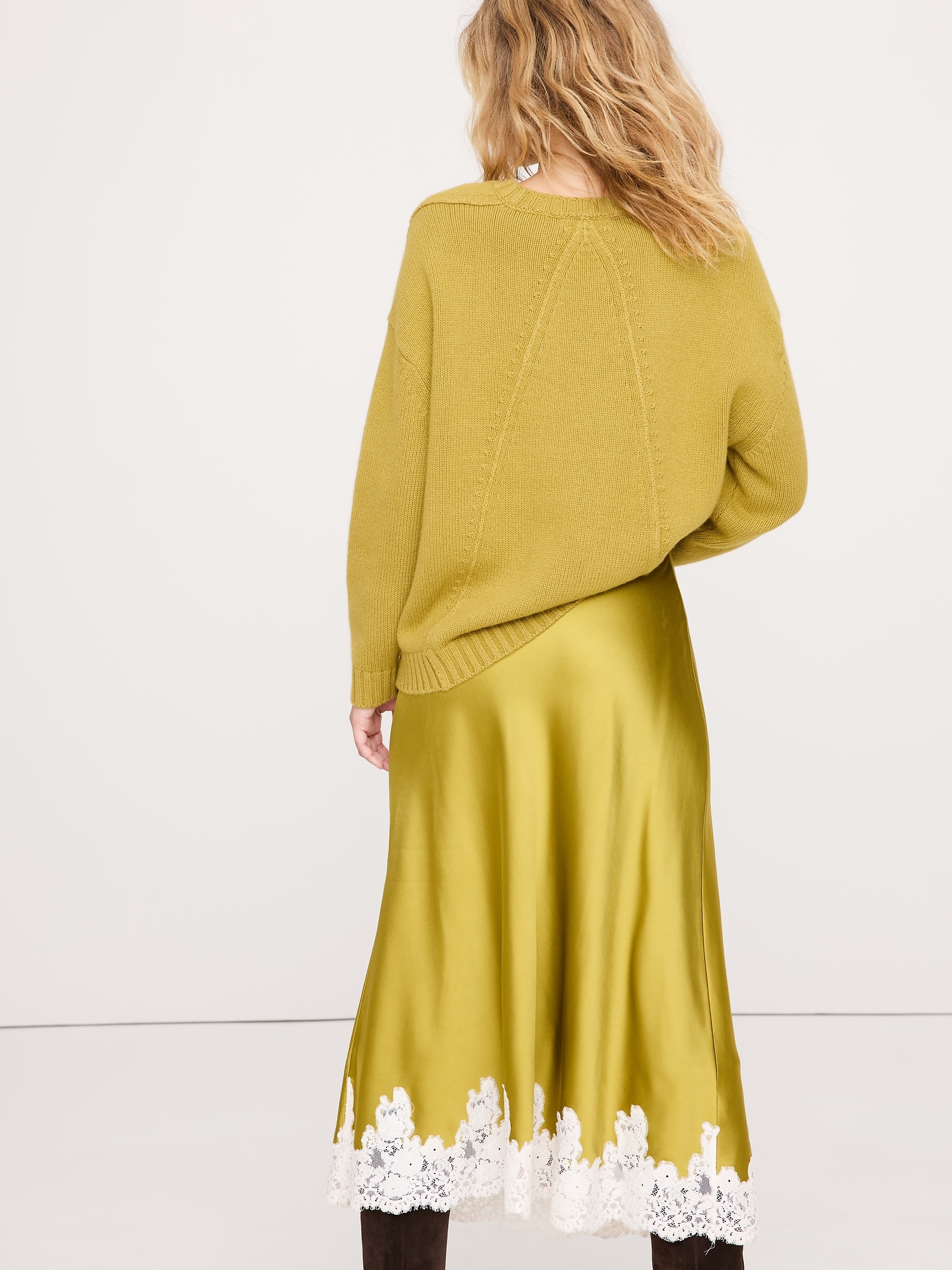 We used a paneled construction to put a spin on the classic, crew-neck sweater. Cut here in an oversized silhouette from a soft and warm Merino wool and cotton yarn.