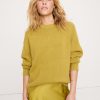 We used a paneled construction to put a spin on the classic, crew-neck sweater. Cut here in an oversized silhouette from a soft and warm Merino wool and cotton yarn.