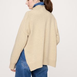 Oversized Merino-Cotton High-Low Funnel-Neck Sweater