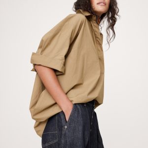 You love this oversized shirt so much, we had to bring it back. This popover shirt is crafted in our signature cotton poplin. We skipped the buttons this time, leaving the collar open for an at-ease effect. Style it with easy linen pants and sandals on warm days and pair with wide-leg jeans and boots on cooler days.