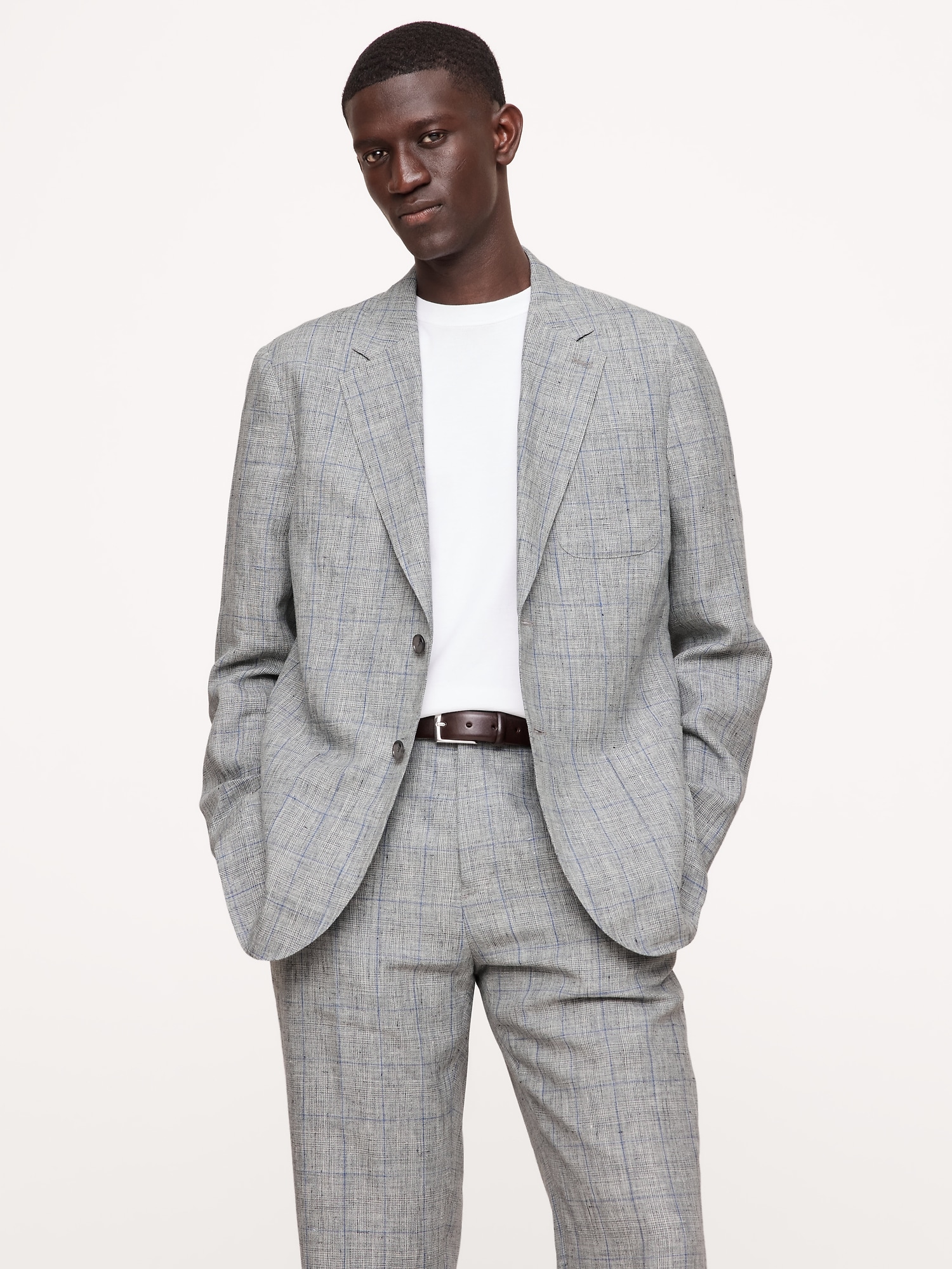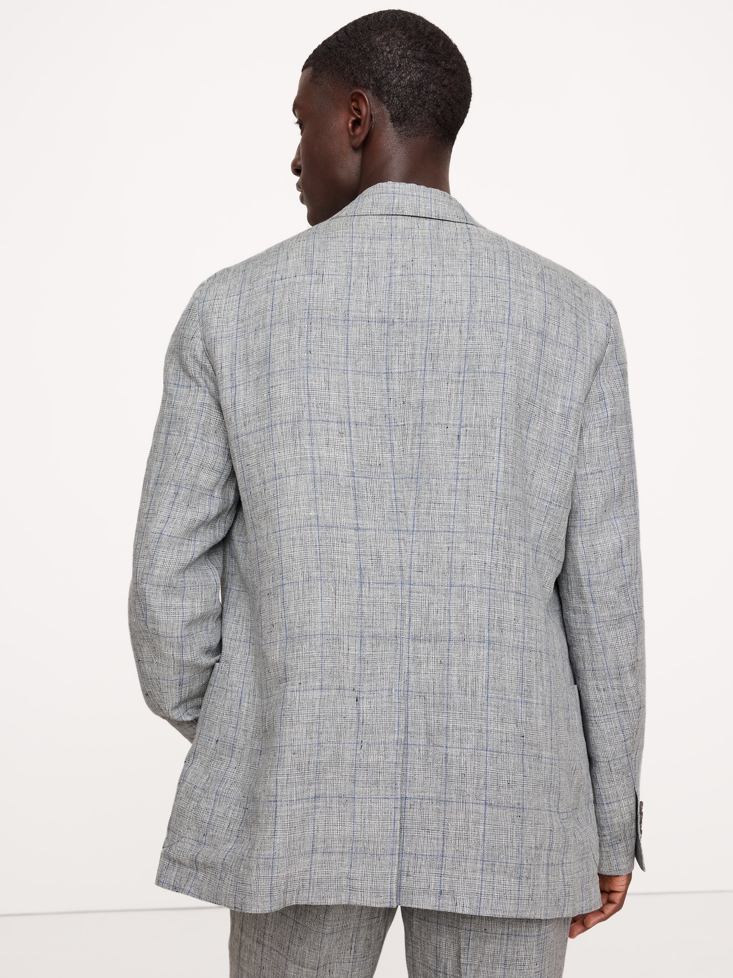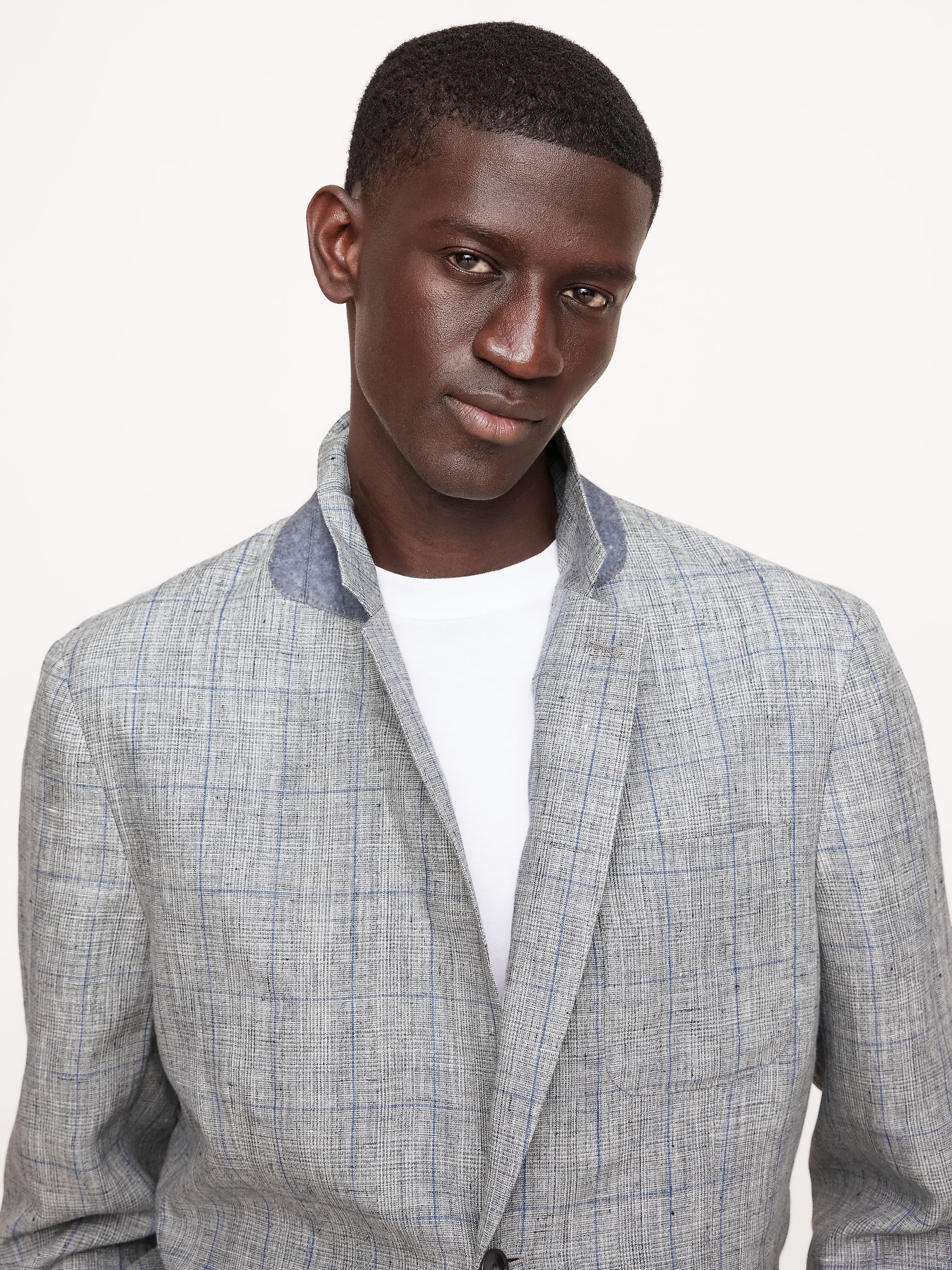 We cut this suit jacket with warm weather in mind, picking a beautiful, certified-European linen fabric and leaving the back unlined so it stays cool. Look closely: we love this fabric’s subtle blue windowpane pattern.