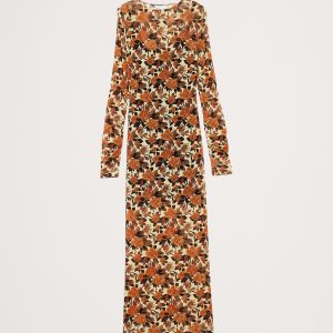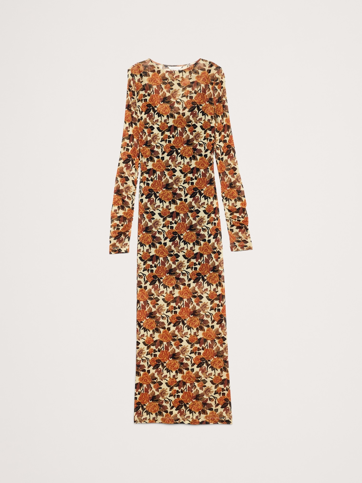Things we love about this maxi dress: the semi-sheer mesh, the camisole slip lining, and the ultra-long sleeves with thumbholes. Plus, it’s super stretchy and t-shirt soft. Fitted: Sits close to the body with a straight skirt. Crew neck. Pull-on design. Camisole slip lining. #817760