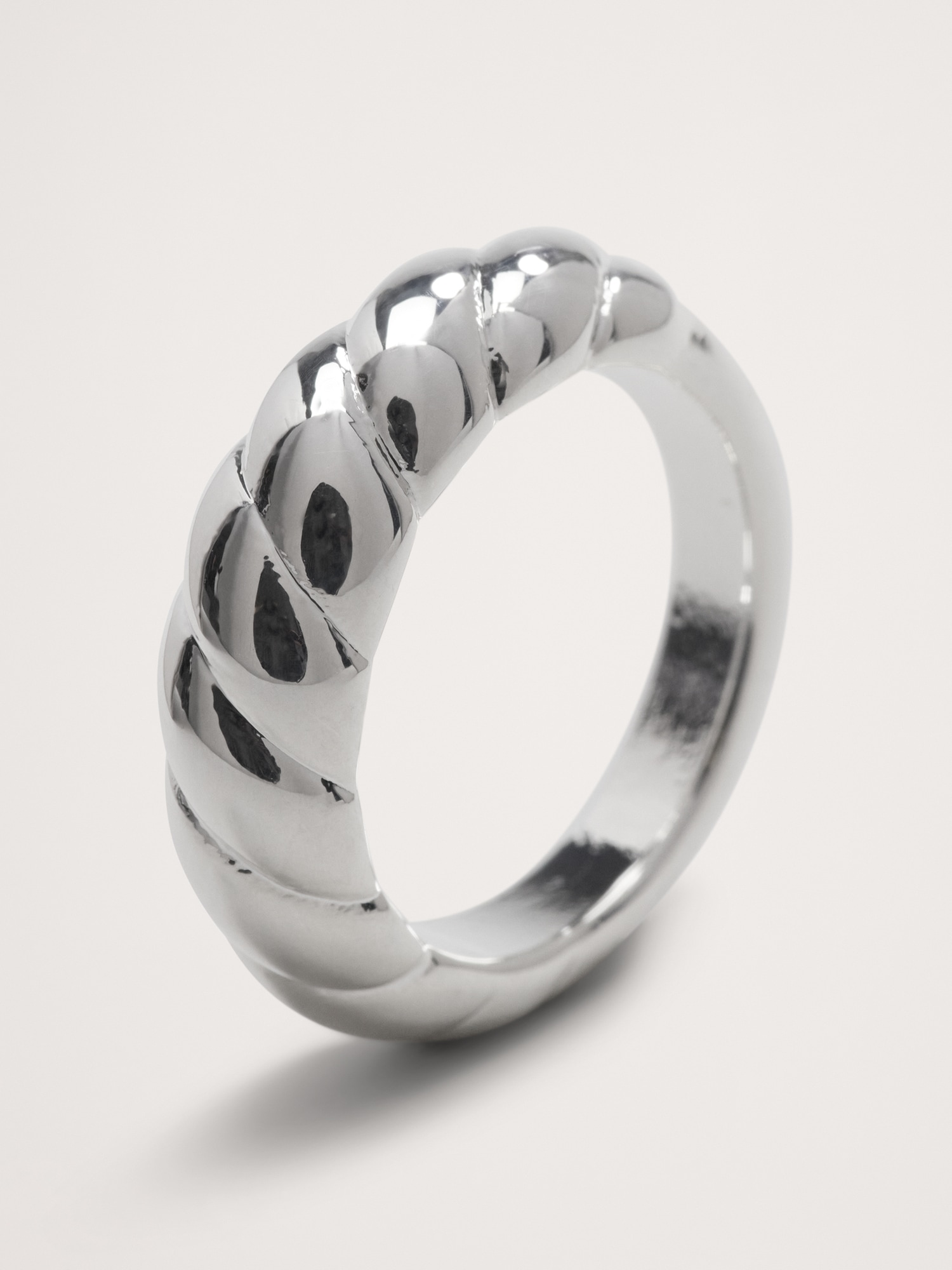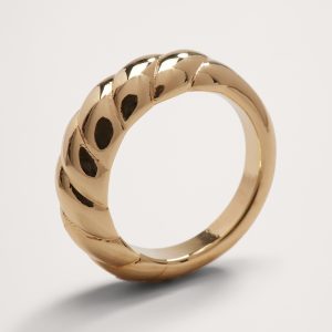 Our classic twisted scallop ring is cast with a delicate slender profile in nicely weighted bronze. Perfect for pairing with other rings. The bronze is plated in 12K gold or sterling silver and polished to a high shine.