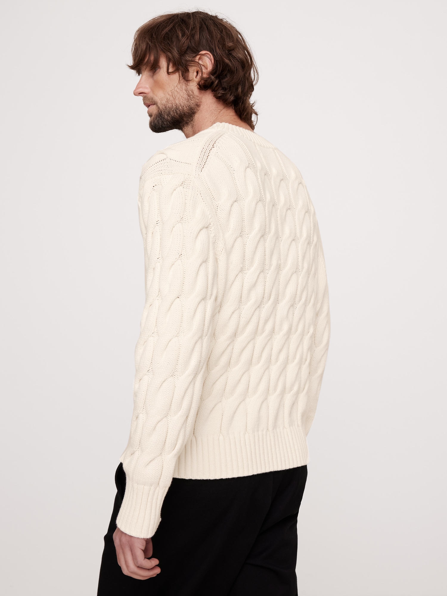 Relaxed Cable-Knit Cotton-Blend V-Neck Sweater