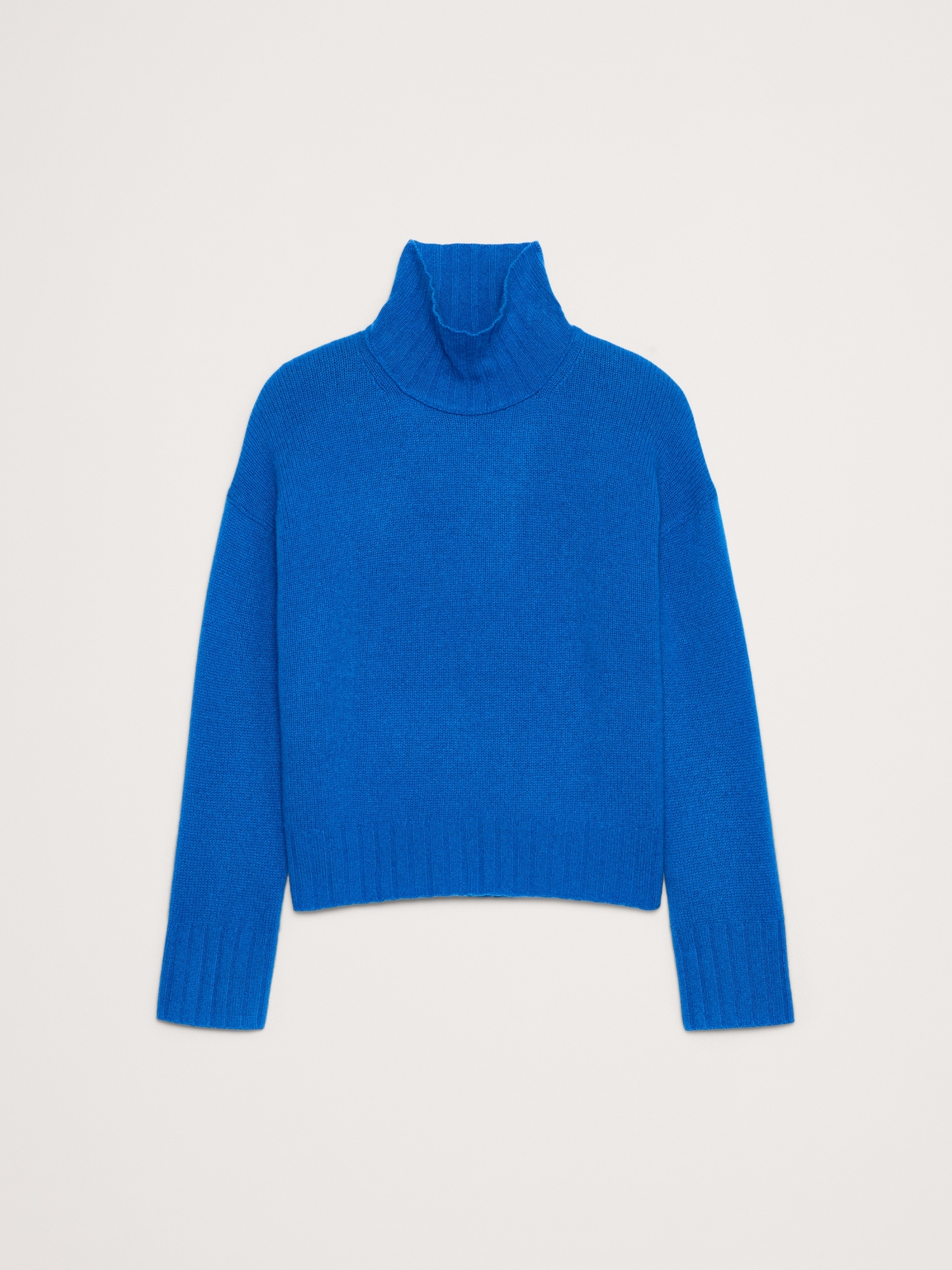 The ideal Big Comfy Cashmere Sweater, we cut this one from our signature cashmere—beloved for its soft texture and midweight warmth. We kept the fit relaxed and added a funnel-neck—similar to a turtleneck, but without the foldover so it’s sleek and easy to layer.