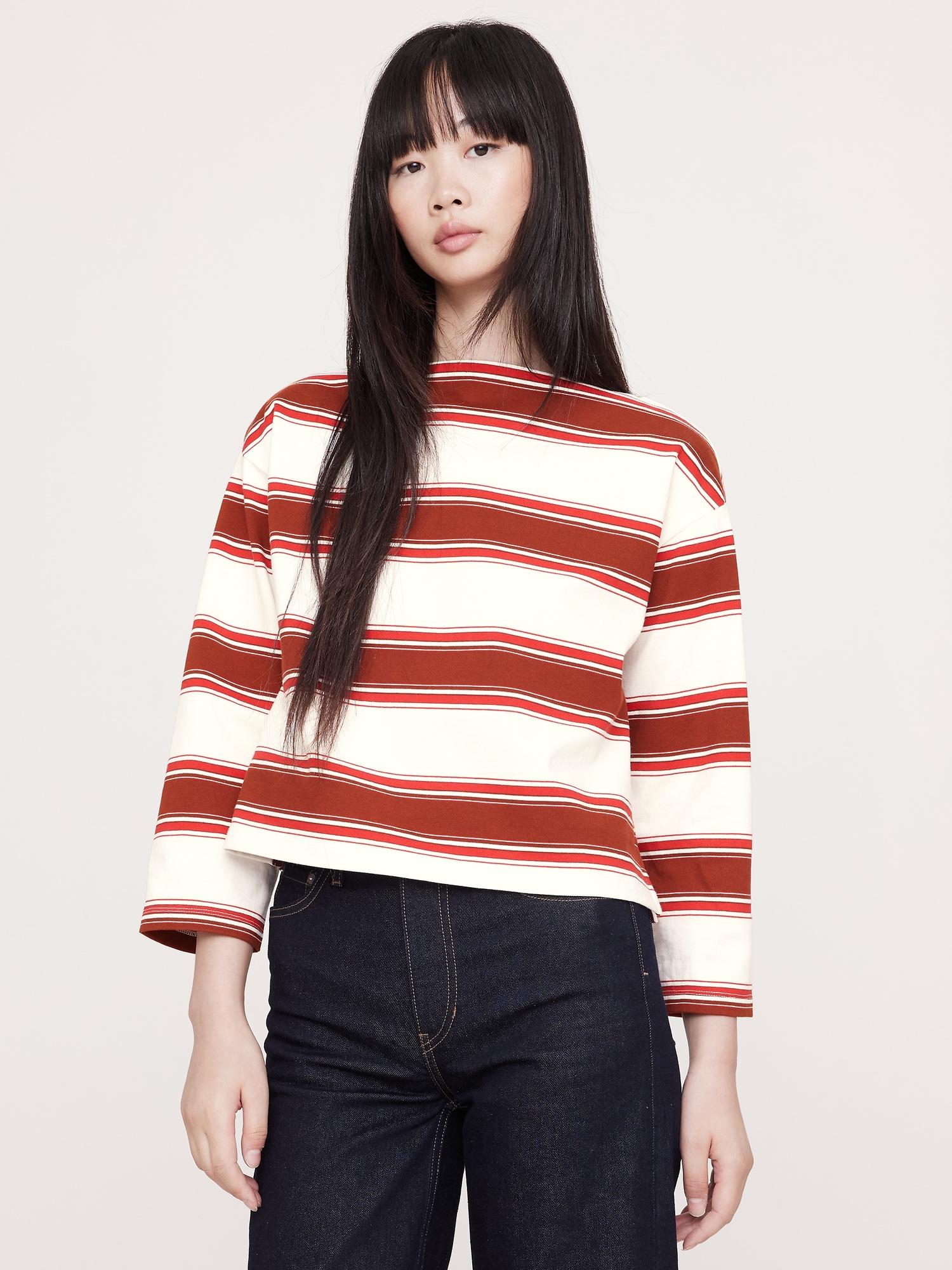 A boatneck t-shirt in a rugged cotton fabric so it’s ideal in cooler seasons.