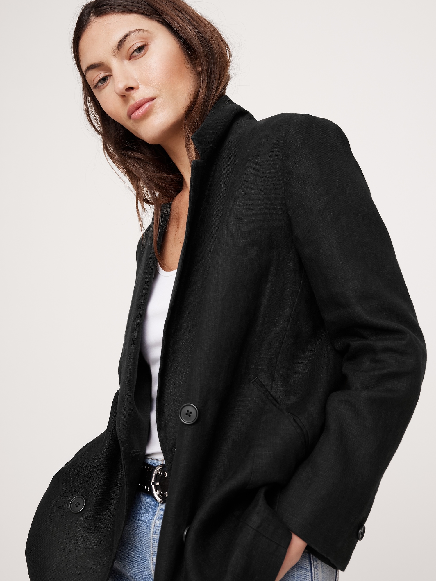 Relaxed Double-Breasted Linen Blazer