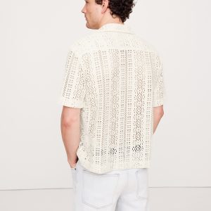We wanted this resort shirt to capture the feel of the best vintage pieces so we chose a lace fabric that mimics the look of true crochet.