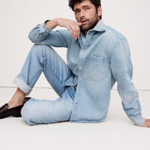 The vibe is vintage. We cut this relaxed shirt from a soft denim fabric in a weight that’s just slightly heavier than chambray so it’s easy to layer through the seasons. Plus, we added a wash to mimic the look and feel of true vintage.