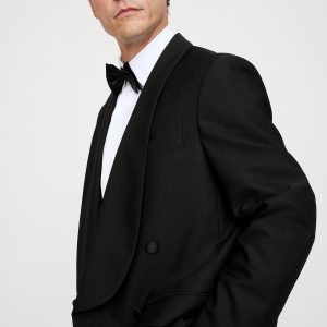 A tuxedo as special as the occasions it’ll see. Note: the Italian wool barathea fabric, the shawl lapel, and the double-breasted front (so it formal).