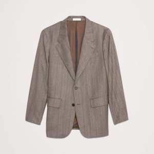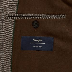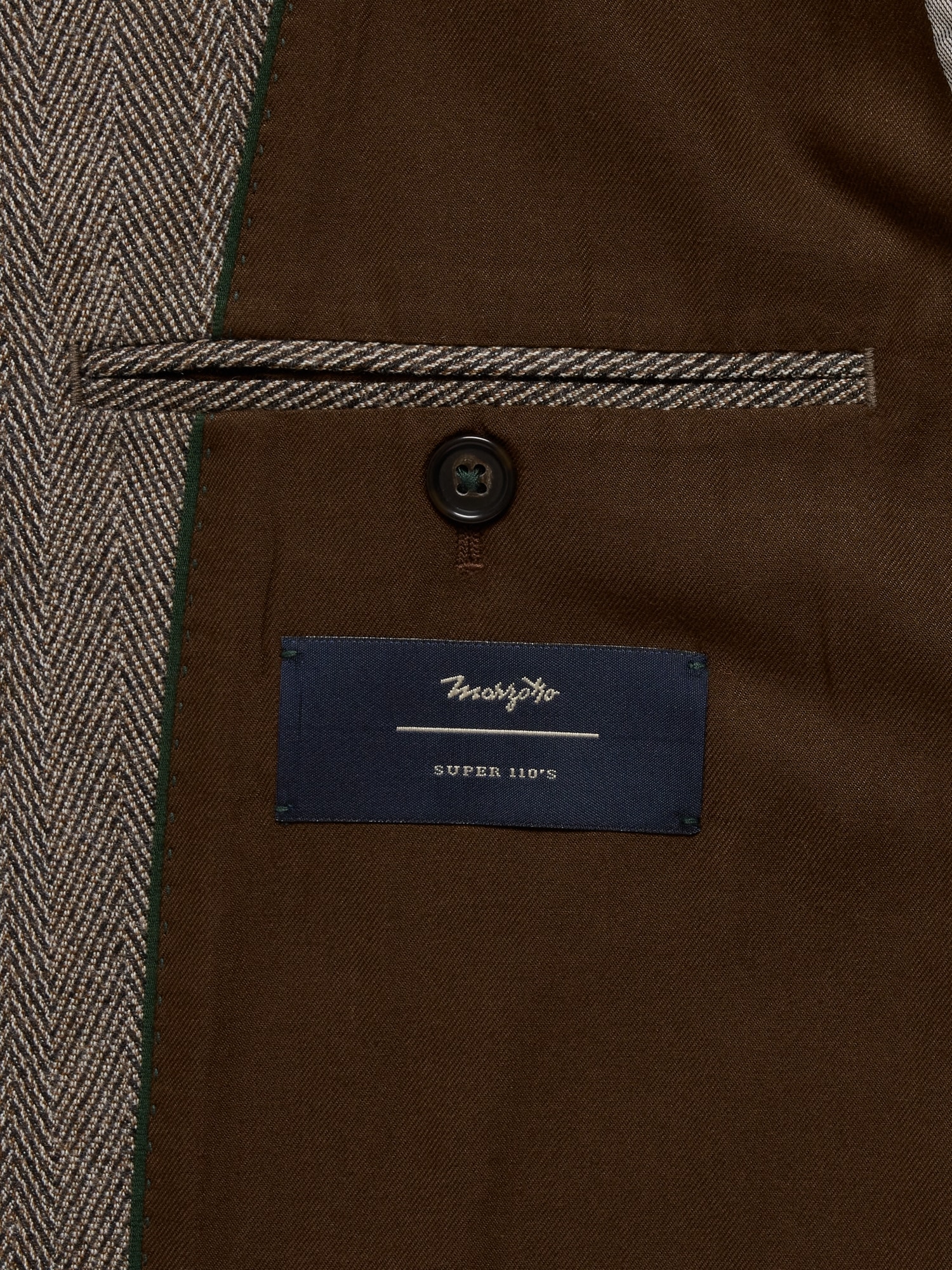 Designed with cooler climates in mind, this sleek suit jacket is cut from an Italian herringbone fabric woven from 100% wool.