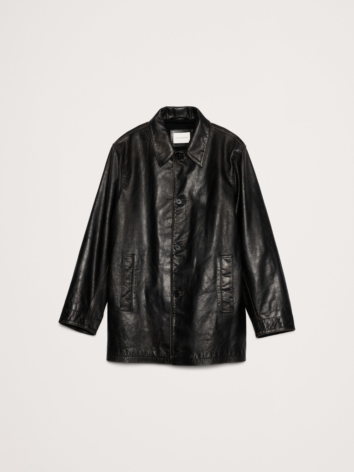 If you love the 90s look, this one’s for you. We recreated a sample from the BR archives, maintaining it’s oversized fit and clean lines (so the beautiful leather really shows through). Fully lined inside for easy layering.