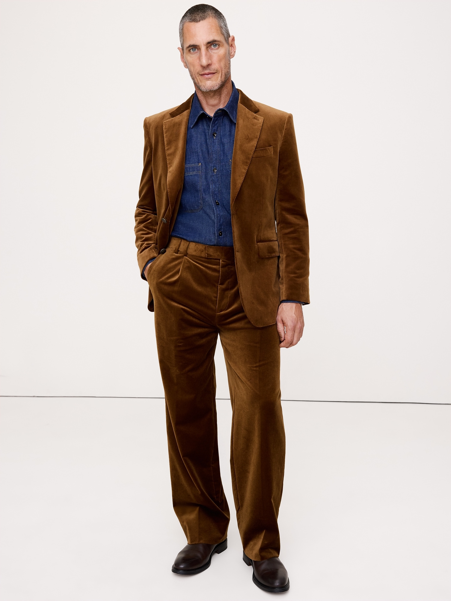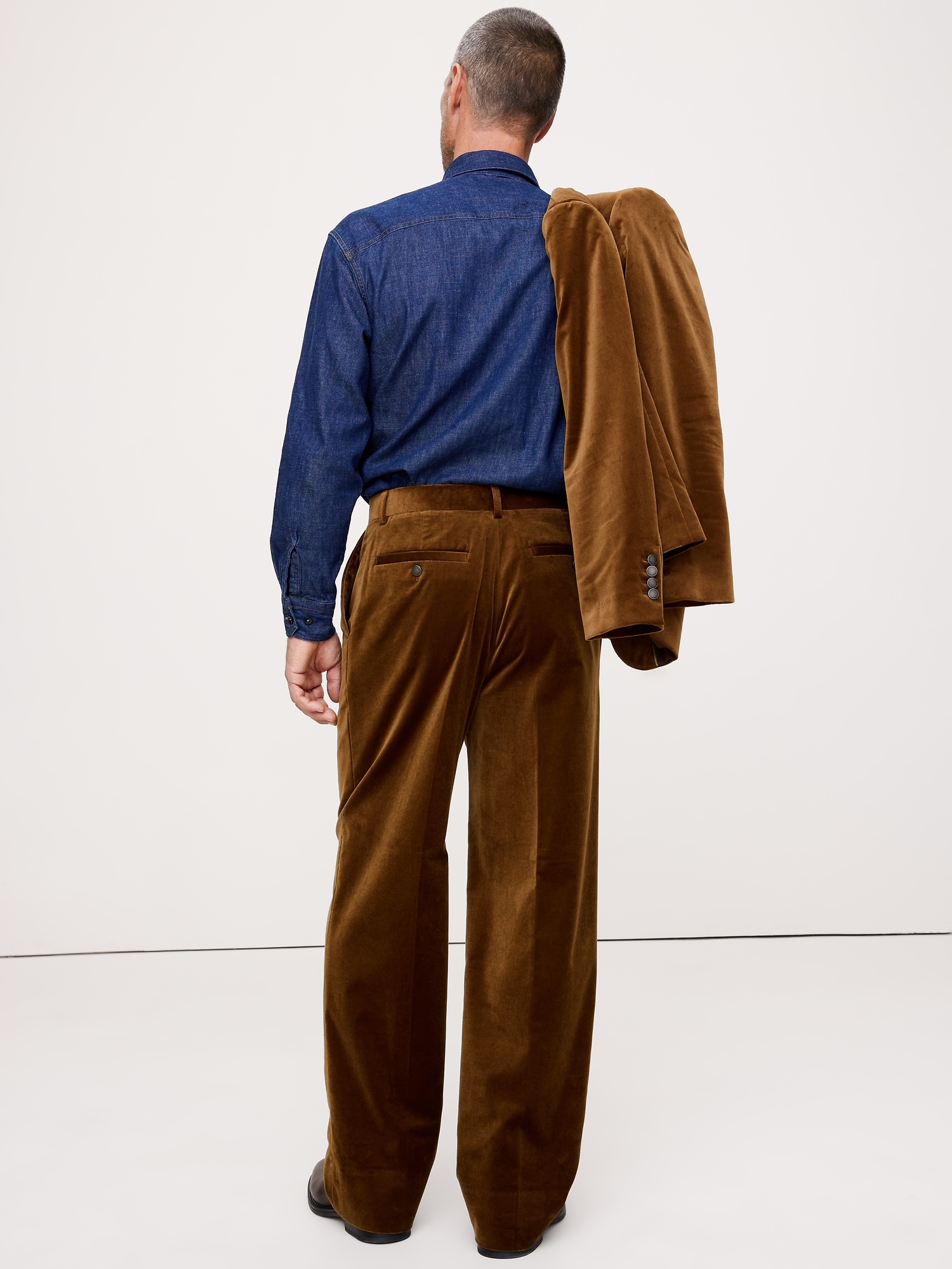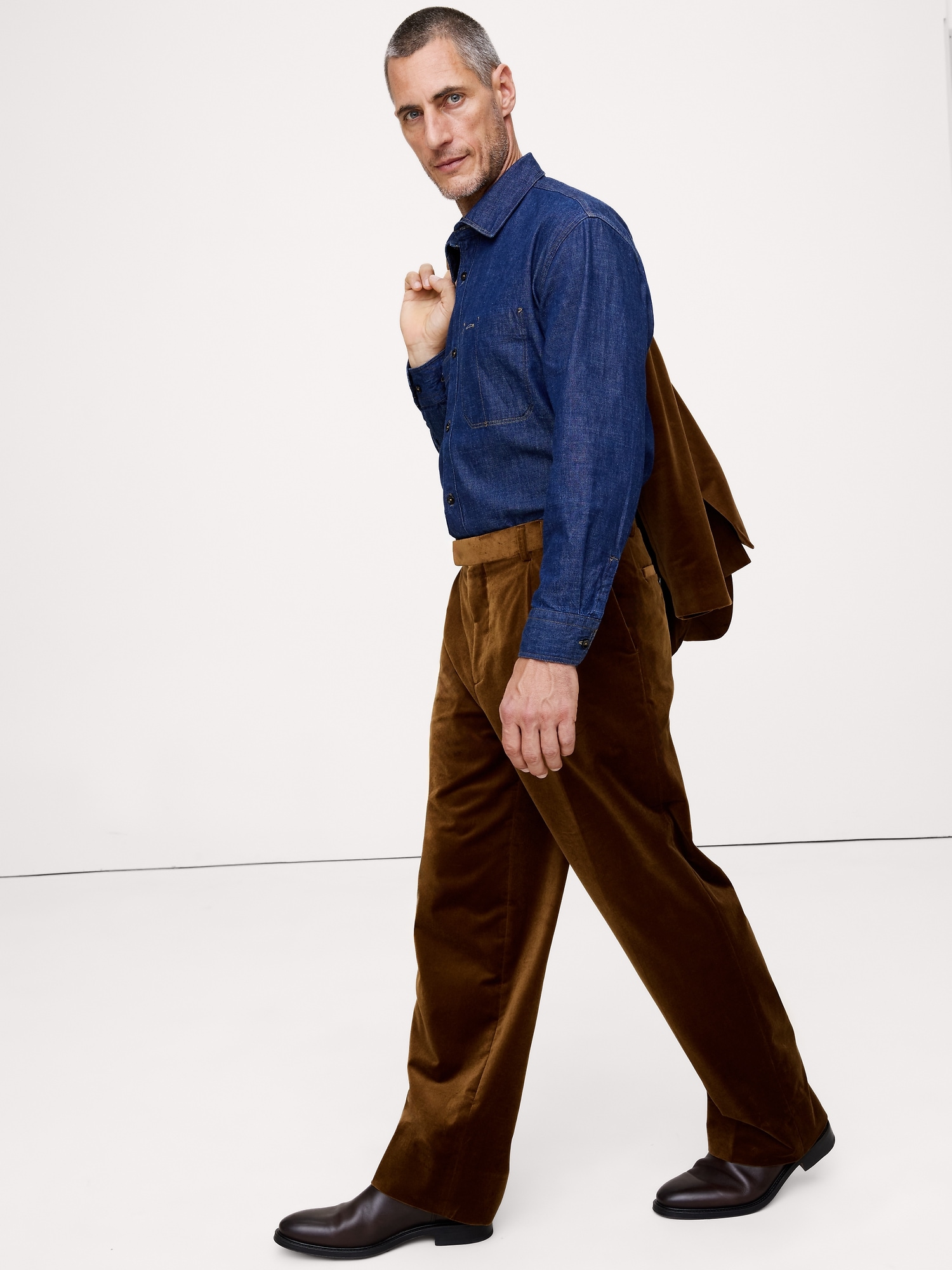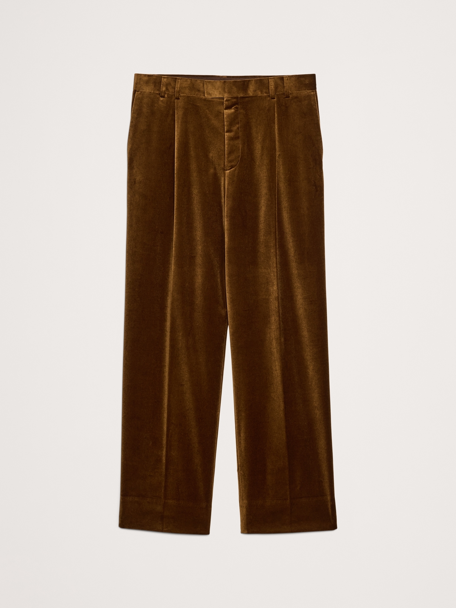 When the occasion calls for something truly special, reach for this pleated velvet pant with it’s distinctive break at the hem. We selected a beautiful cotton velvet for its construction, cutting the fabric pile-up to add to its luster.