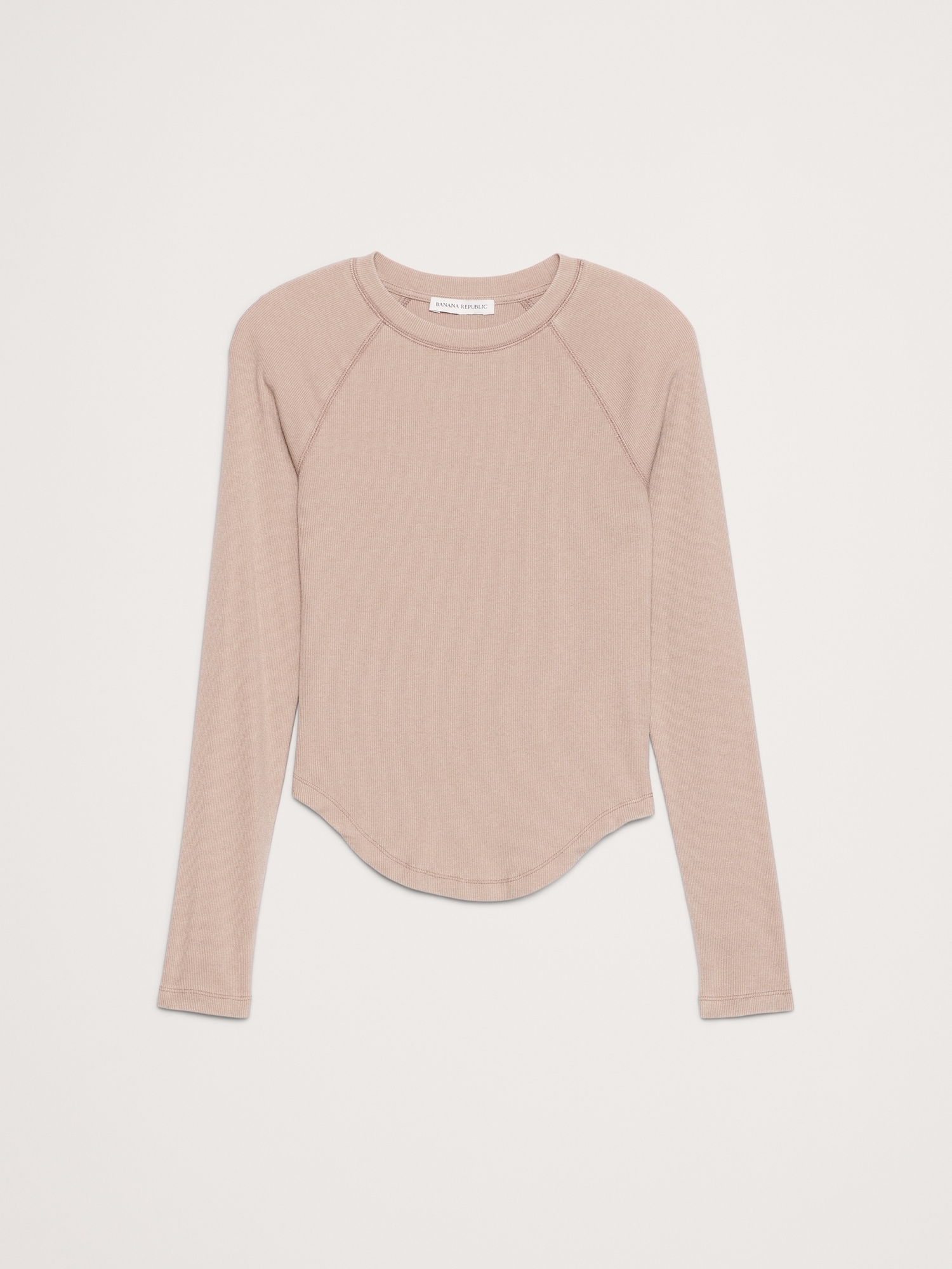 This ribbed t-shirt is cut with a curved hem, crafted from a cotton and modal blend, giving it an even-softer handfeel.
