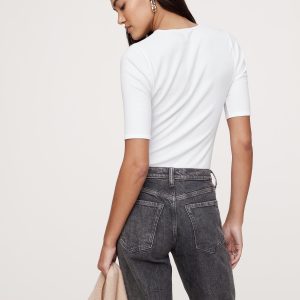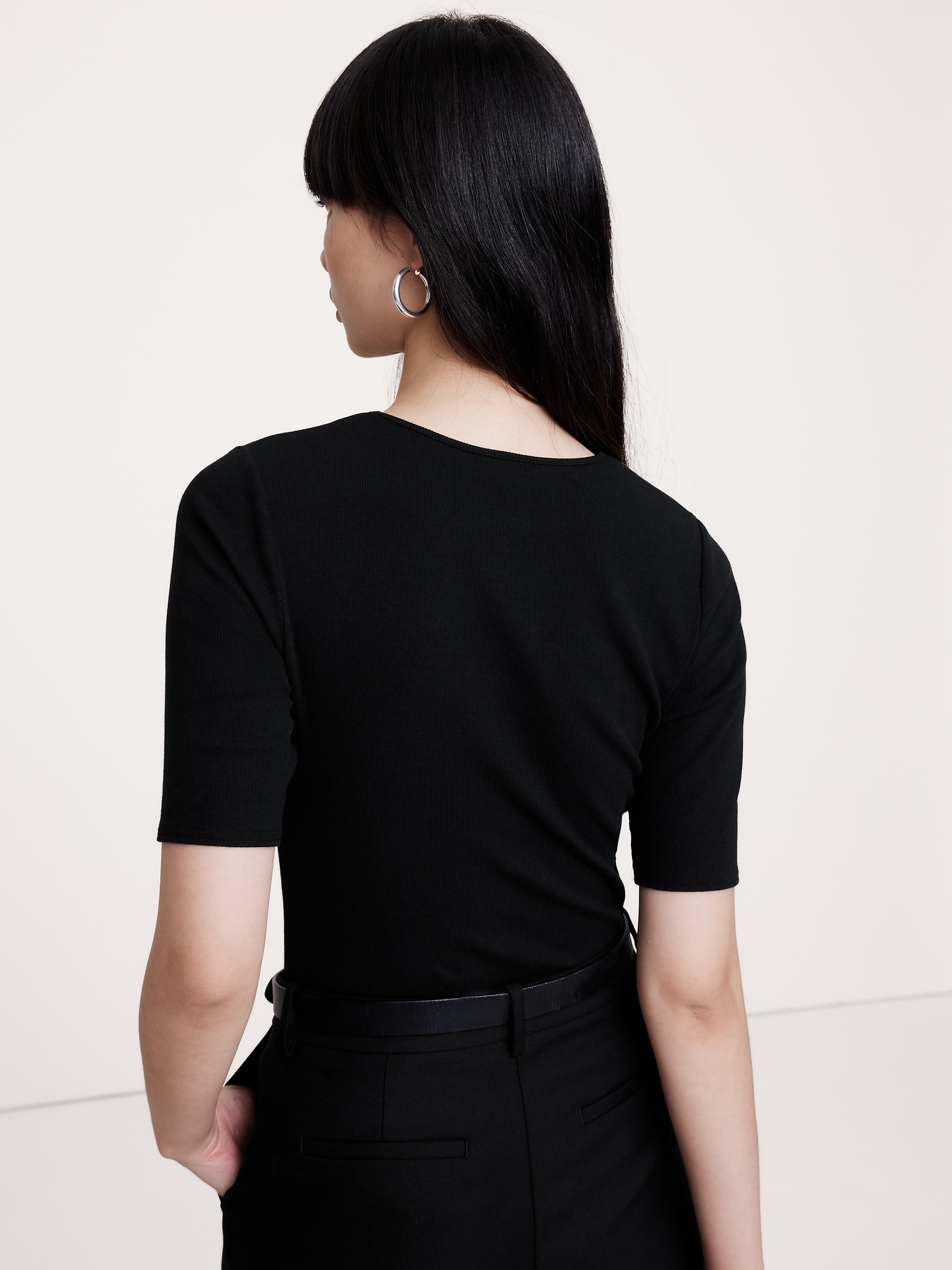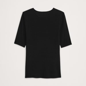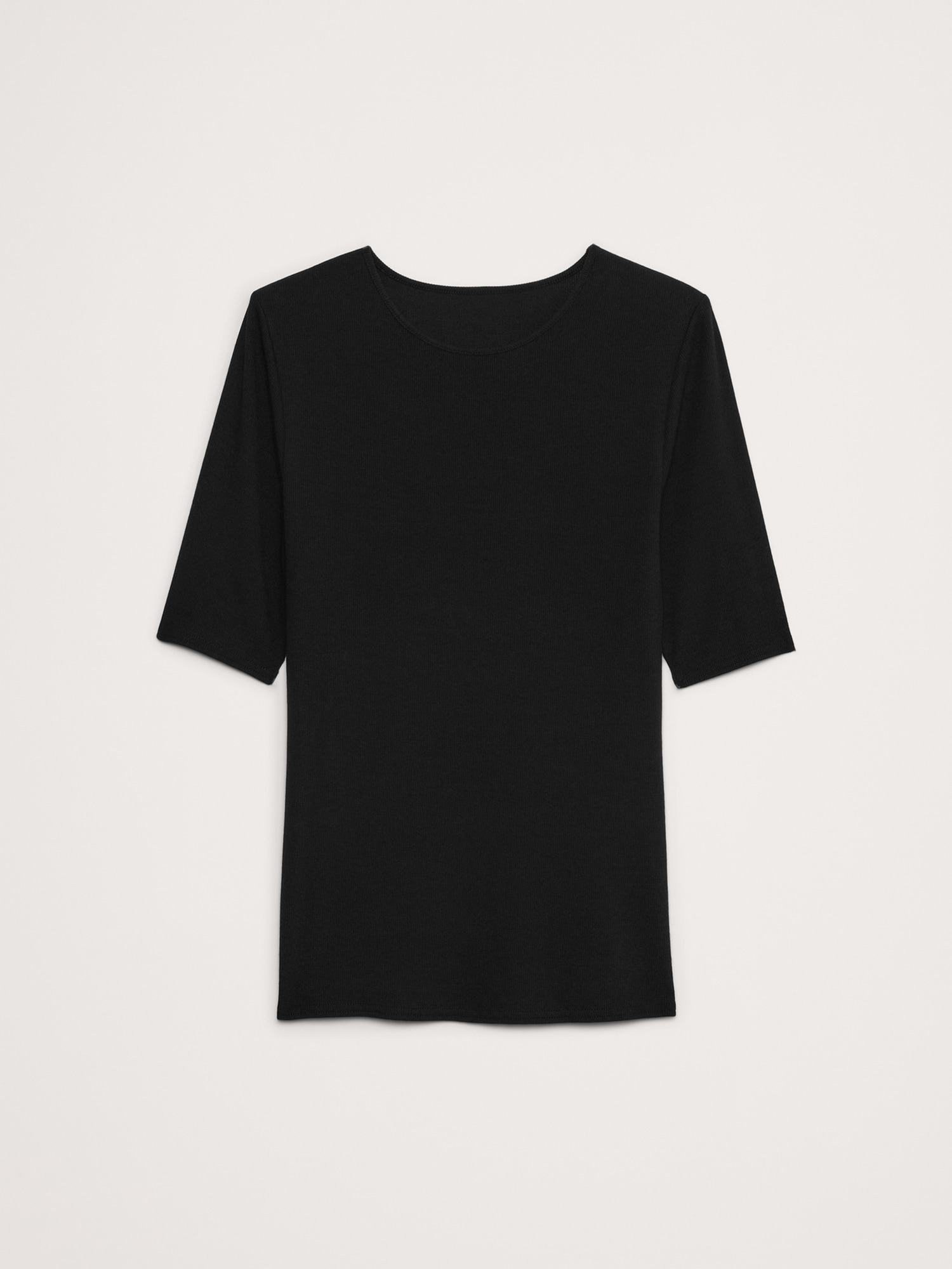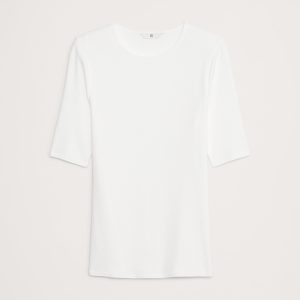 Ribbed Elbow-Sleeve T-Shirt