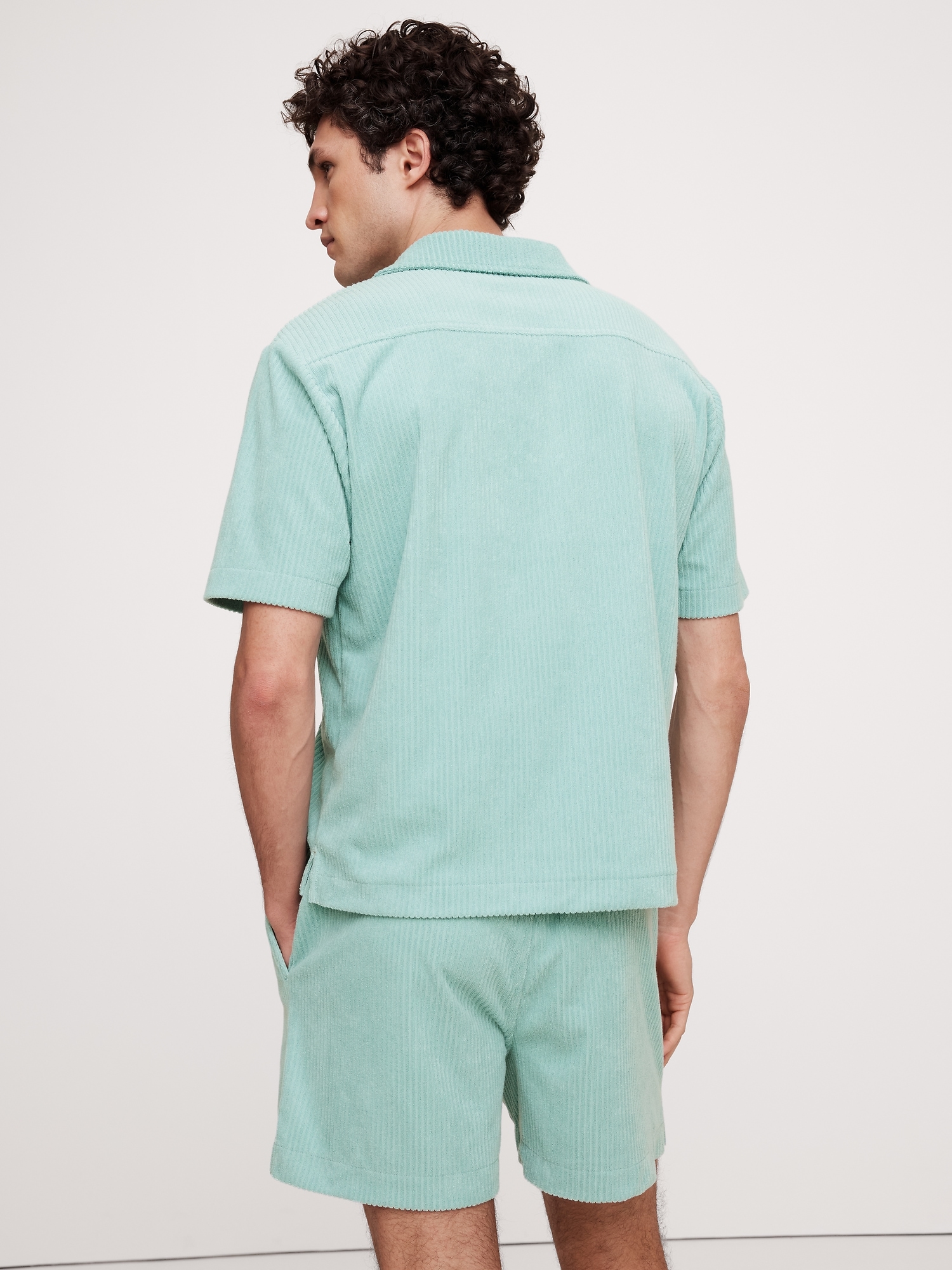 Pro tip: looks great poolside. This terry polo is made for warm-weather in a toweling ribbed fabric. Make it a set with the matching shorts.