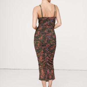 Ruched Mesh Corset Midi Dress