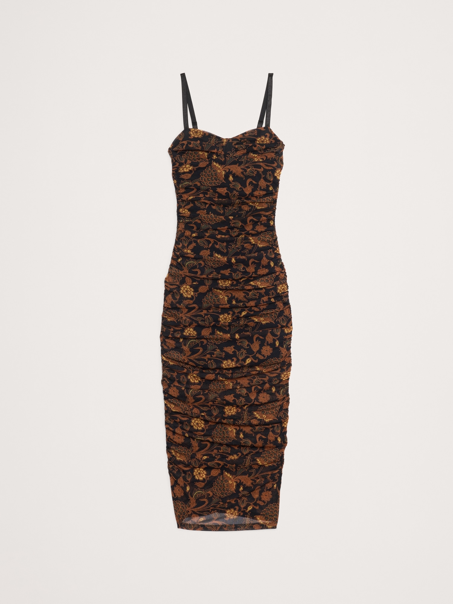 Hard to forget. This slinky midi dress has a corset-inspired bodice and allover ruching, cut in our stretch-mesh for a delightful, next-to-skin feel. Sheath Fit: Sits close to the body with a straight skirt. Sweetheart neckline. Invisible zip at back. Lined to mini-length. #817714