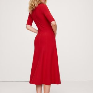 A dress that says \”leave it to me\”. We cut this midi dress in our high-stretch Sculpted yarn, here with a Milano stitch so it lays smooth against the skin.