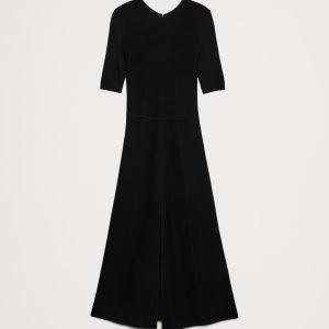 A dress that says \”leave it to me\”. We cut this midi dress in our high-stretch Sculpted yarn, here with a Milano stitch so it lays smooth against the skin.