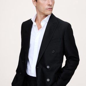 This tailored blazer is expertly cut with a double-breasted front in our signature Italian hopsack fabric, selected for its basketweave texture and exceptional drape.