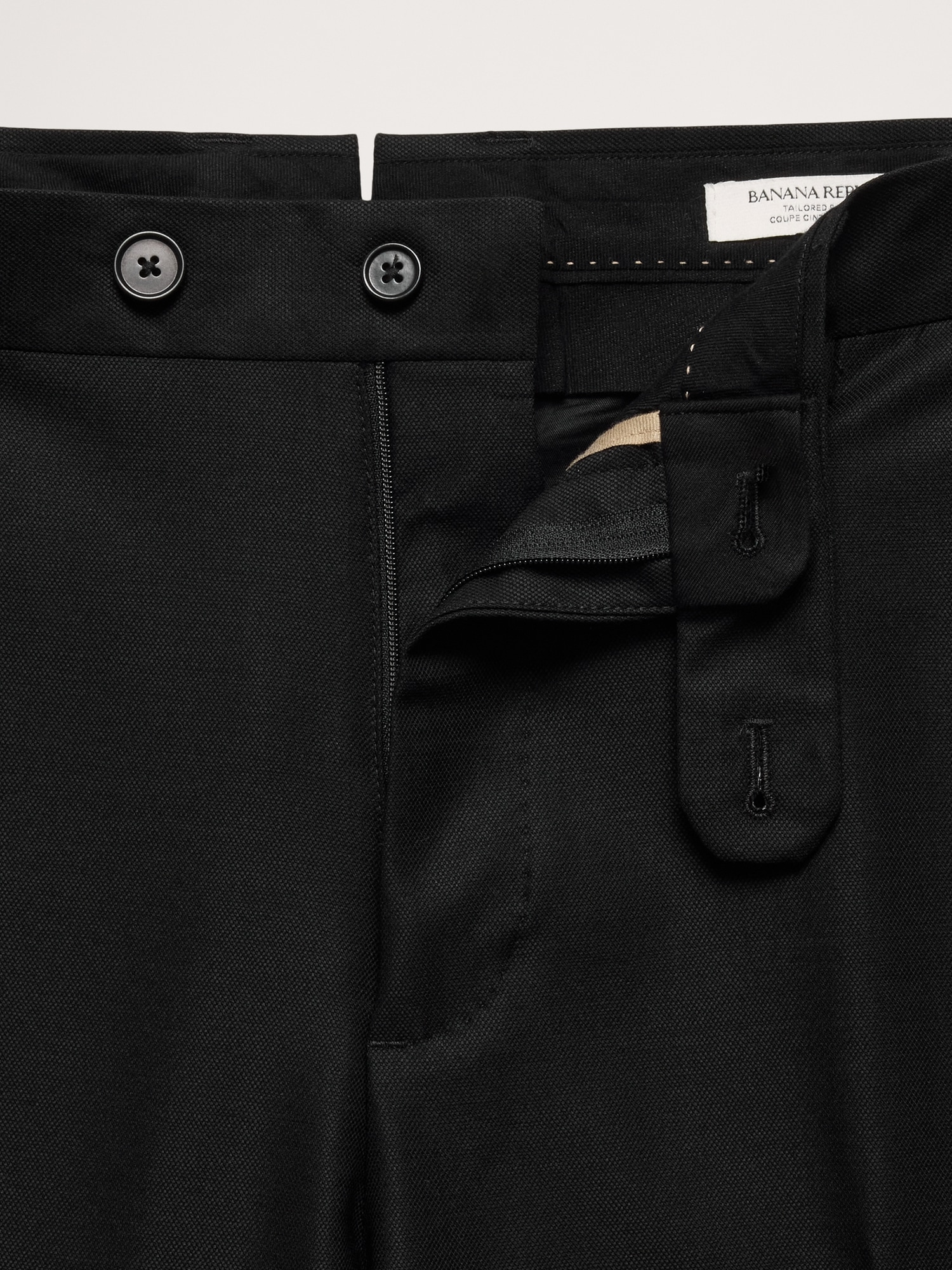 Zip fly with button-tab waistband.