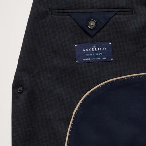 Top-tier tailoring, we finished this blazer with intricate pick stitching and a full lining for a traditional, timeless look. A small surprise: this handsome Italian wool has a micro houndstooth print in a rich, navy blue color.