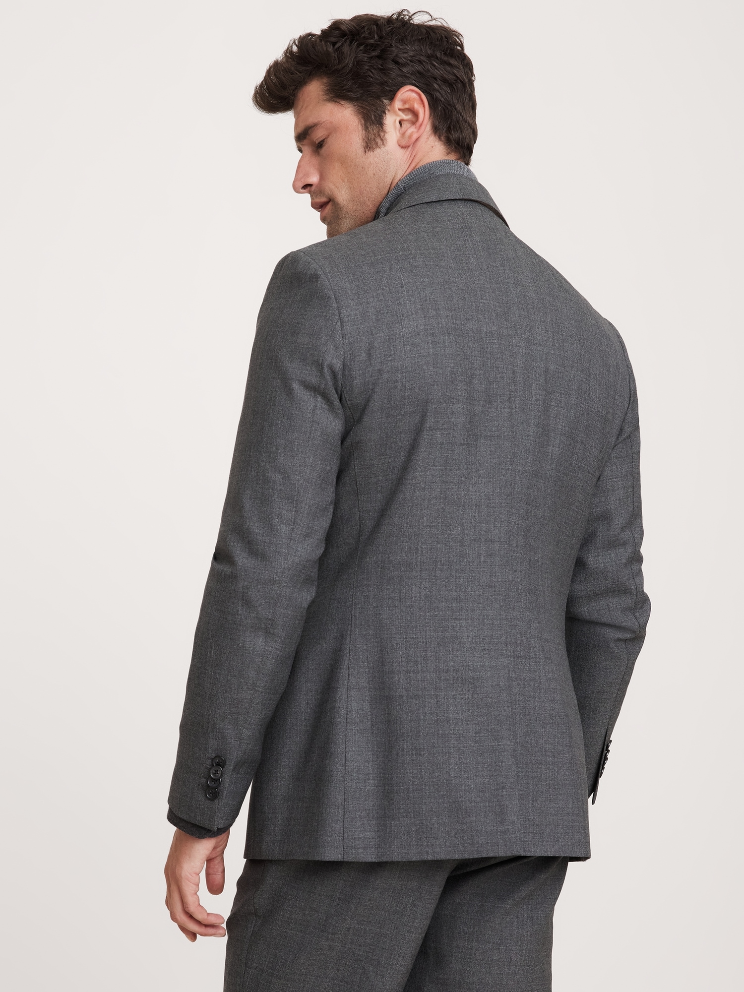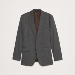 This sophisticated Italian wool suit jacket stands up to warm weather with a luxurious tropical wool fabric—a fabric beloved for its distinctive balance between an open weave and a tighter tension yarn, which gives it the ability to remain breathable while always looking pulled-together. Wrinkle-ResistantSlim Fit: Sits at the natural shoulder with an Italian-style soft shoulder expression. Fitted through the chest and waist.