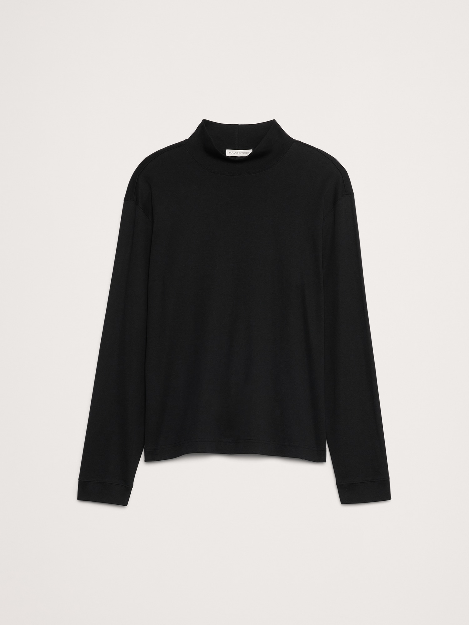 An elevated basic, this classic turtleneck tee is crafted from a silky, 100% cotton fabric that reads more dressed-up.