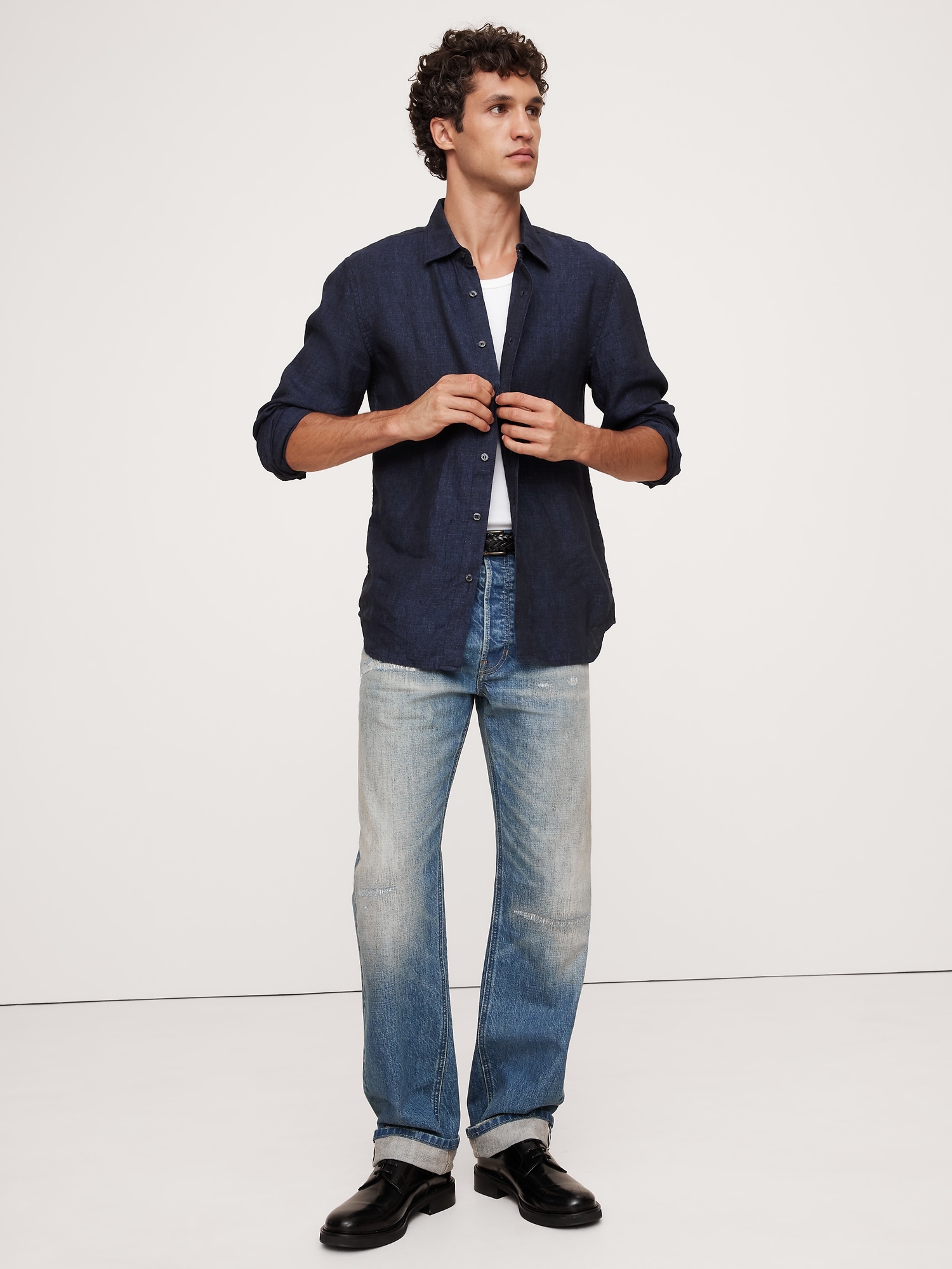 Made from 100% certified-European linen, just the way we like it. We kept the silhouette of this long-sleeve shirt easy and opted for a classic point collar.
